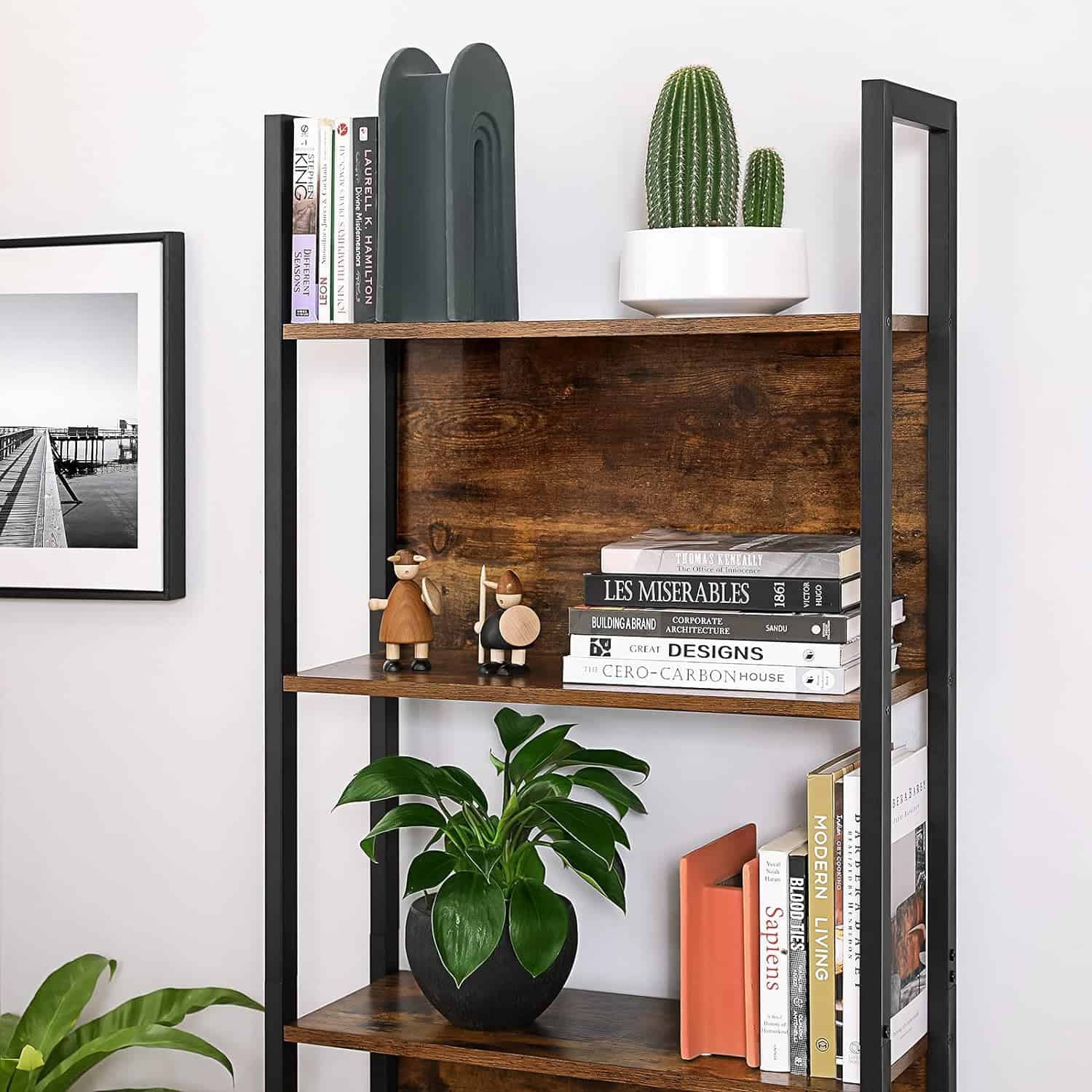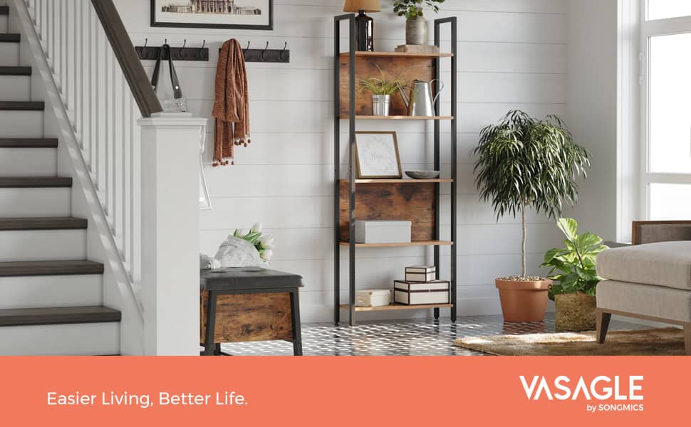 VASAGLE Biblioteca cu 5 rafturi de depozitare, cadru otel, stil industrial, 62x24x165cm, maro rustic si negru Mob360 – produs disponibil în magazinul Mob360.