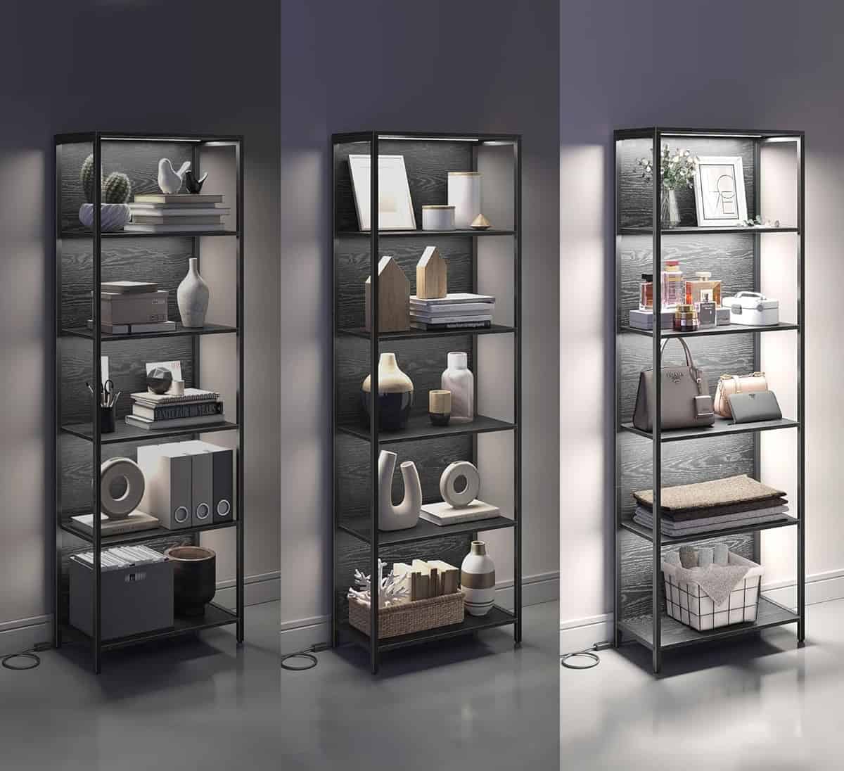 VASAGLE Biblioteca cu 6 rafturi si iluminare LED reglabila 25 culori, cadru metalic, 30x60x179 cm, negru Mob360 – produs disponibil în magazinul Mob360.