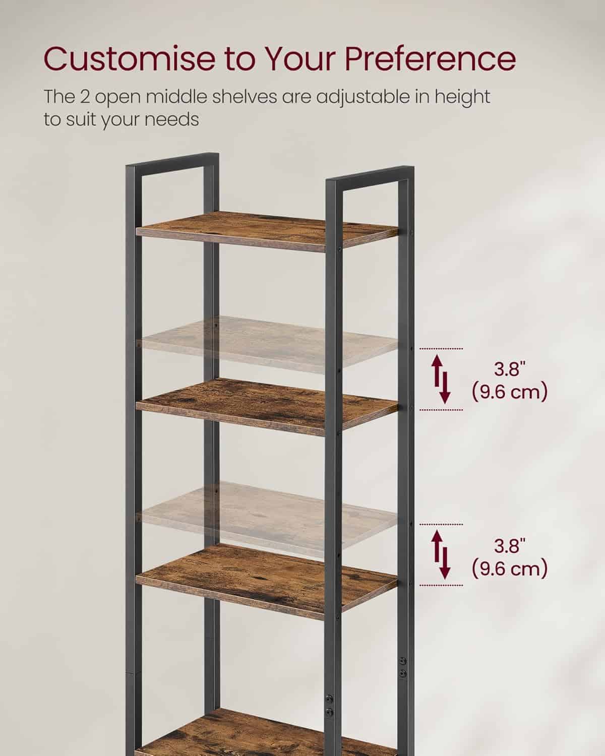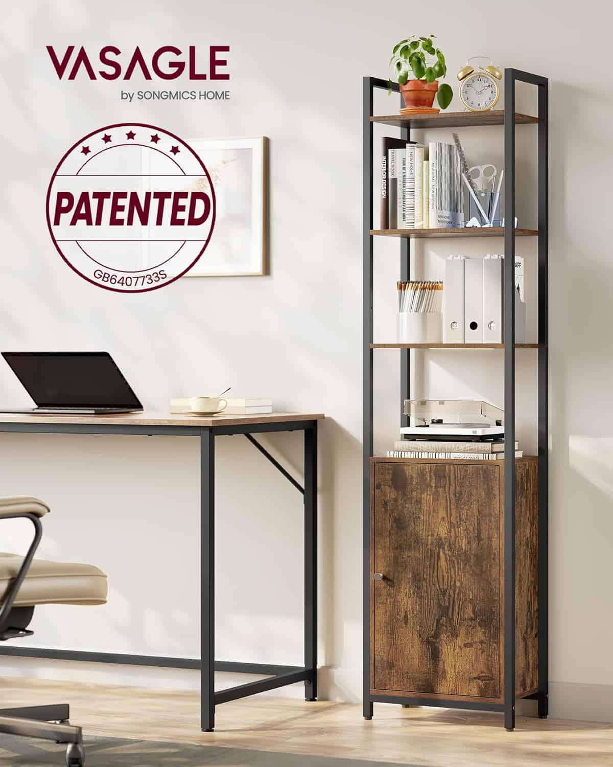 VASAGLE Biblioteca inalta cu 6 rafturi si dulap, cadru metalic, rafturi reglabile, stil vintage, 40x24x160 cm, maro rustic Mob360