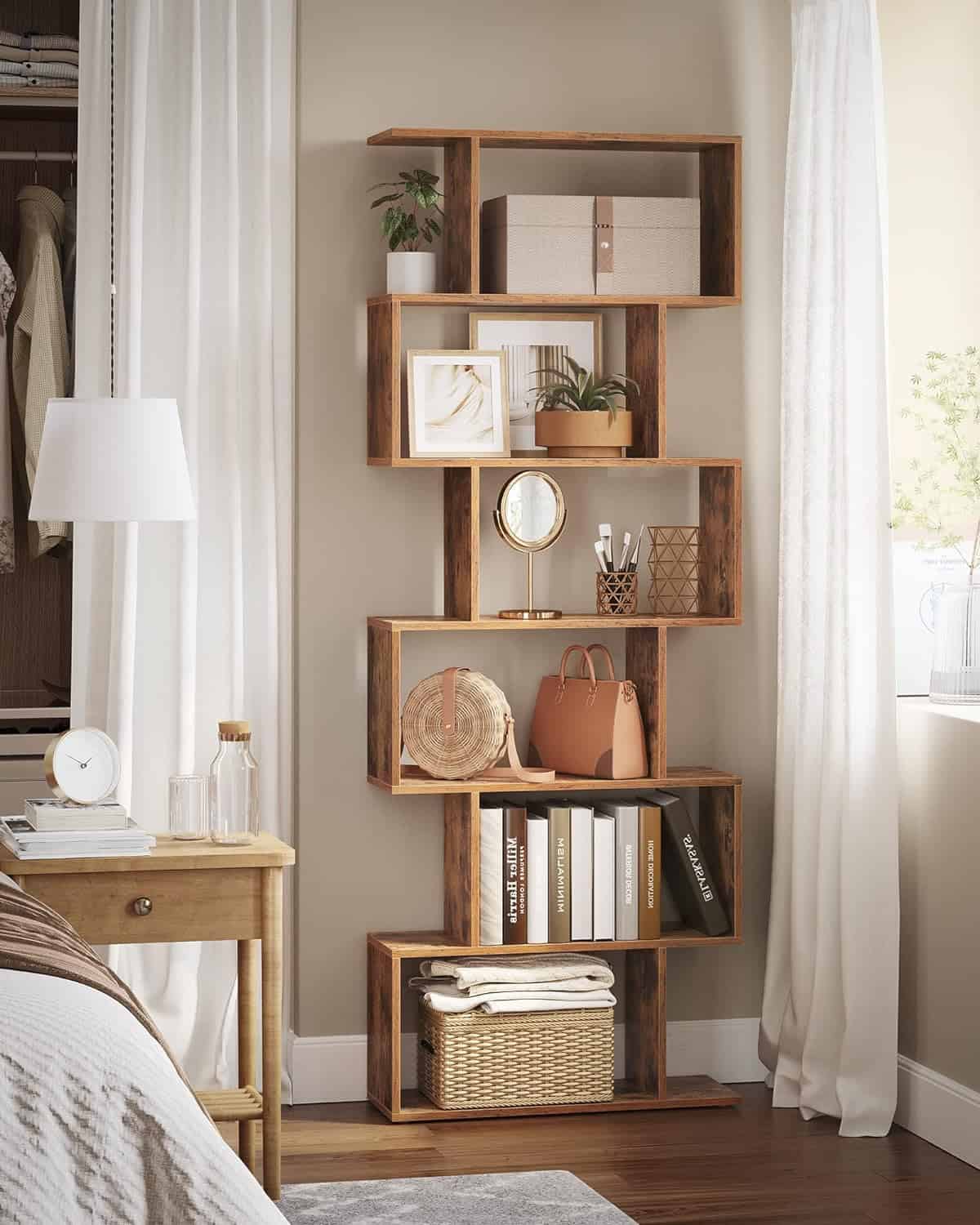VASAGLE Biblioteca, raft cu 6 unitati de depozitare, pentru living, din lemn, 24x190x70cm, maro rustic Mob360 – produs disponibil în magazinul Mob360.