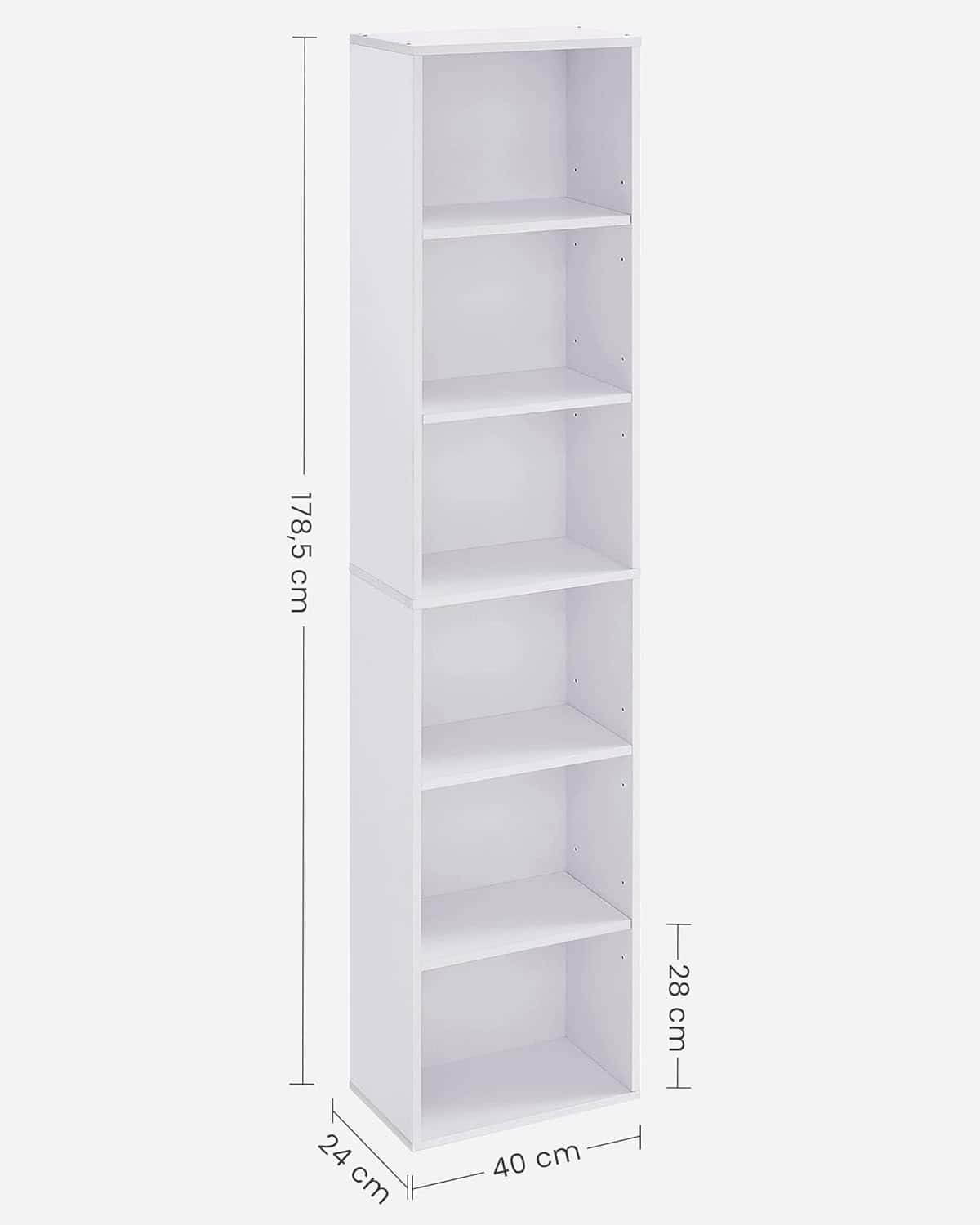VASAGLE Biblioteca verticala 40x24x179 cm, 6 rafturi din care 4 reglabile, PAL alb mat Mob360 – produs disponibil în magazinul Mob360.
