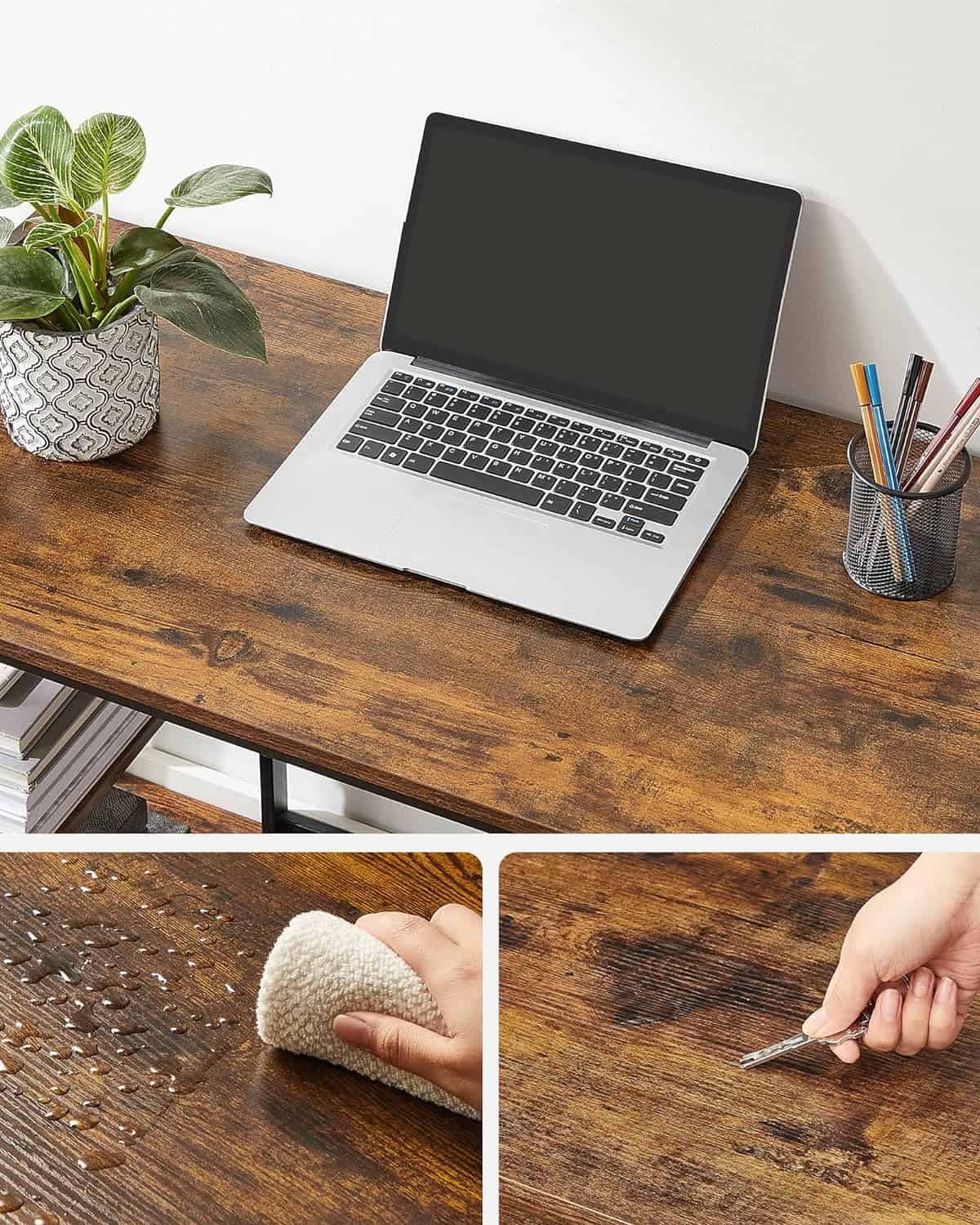 VASAGLE Birou cu 2 rafturi pe stanga sau dreapta, cadru din otel, 50x100x75cm, industrial, maro rustic si negru Mob360 este disponibil în magazinul Mob360.
