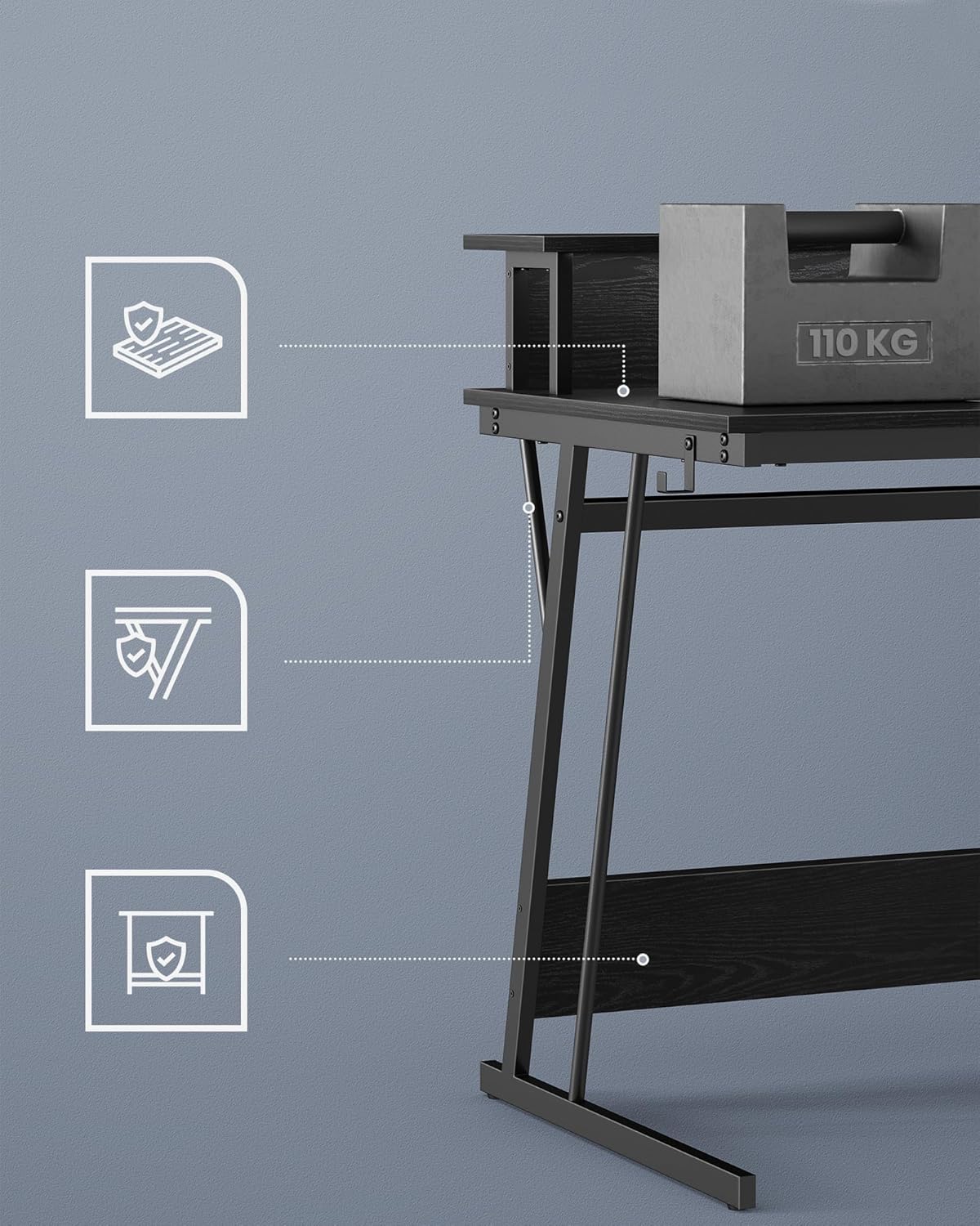 - Inaltime birou: 76 cm (91 cm cu suport monitor)
