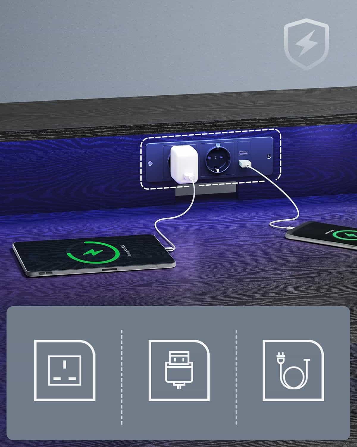 - AC, 2 x USB Iluminare LED: 20 culori, 6 moduri, 5 niveluri luminozitate, 5 viteze