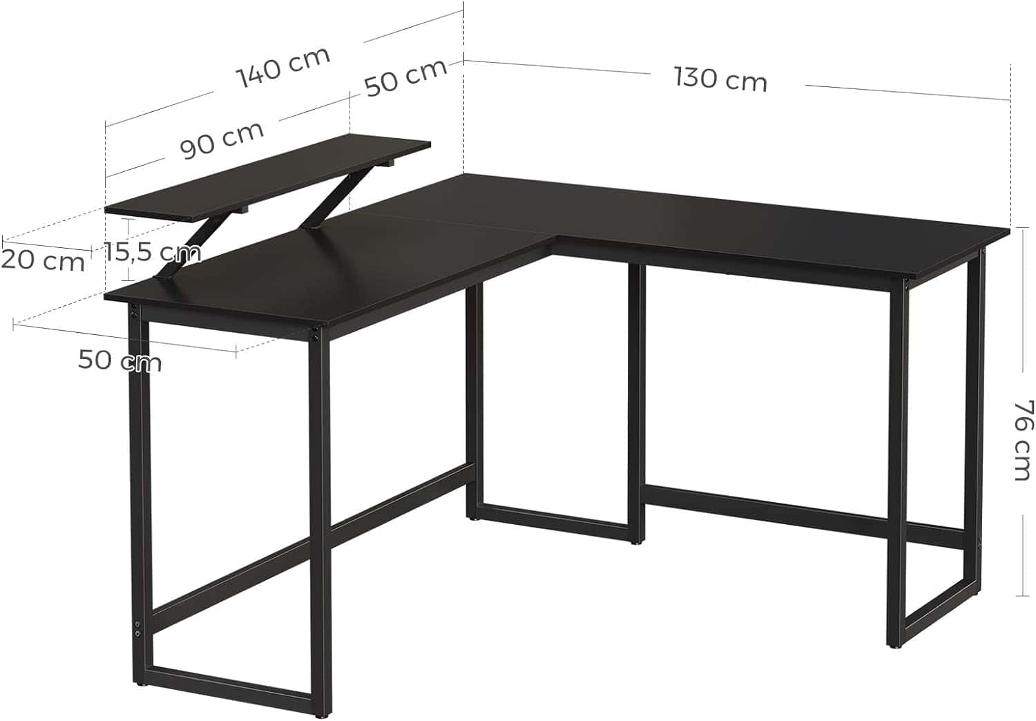 VASAGLE Birou in forma de L cu suport pentru monitor, cadru metalic, 140x130x76cm, negru Mob360