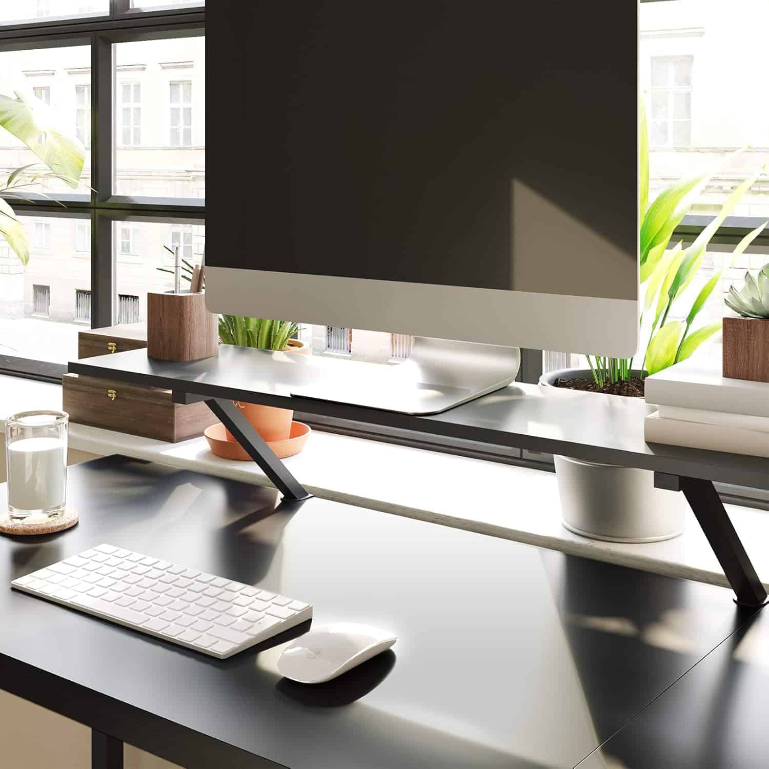 VASAGLE Birou in forma de L cu suport pentru monitor, cadru metalic, 140x130x76cm, negru Mob360 – produs disponibil în magazinul Mob360.