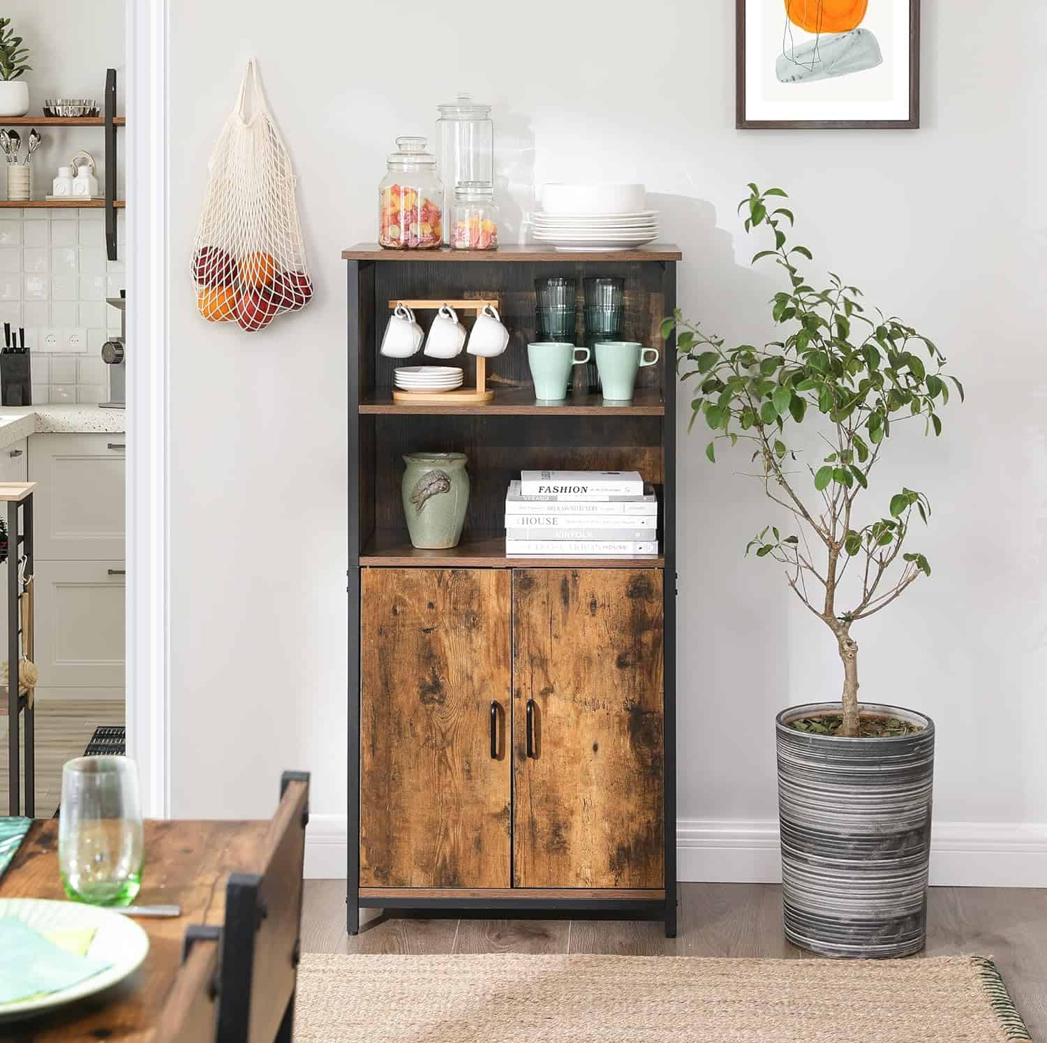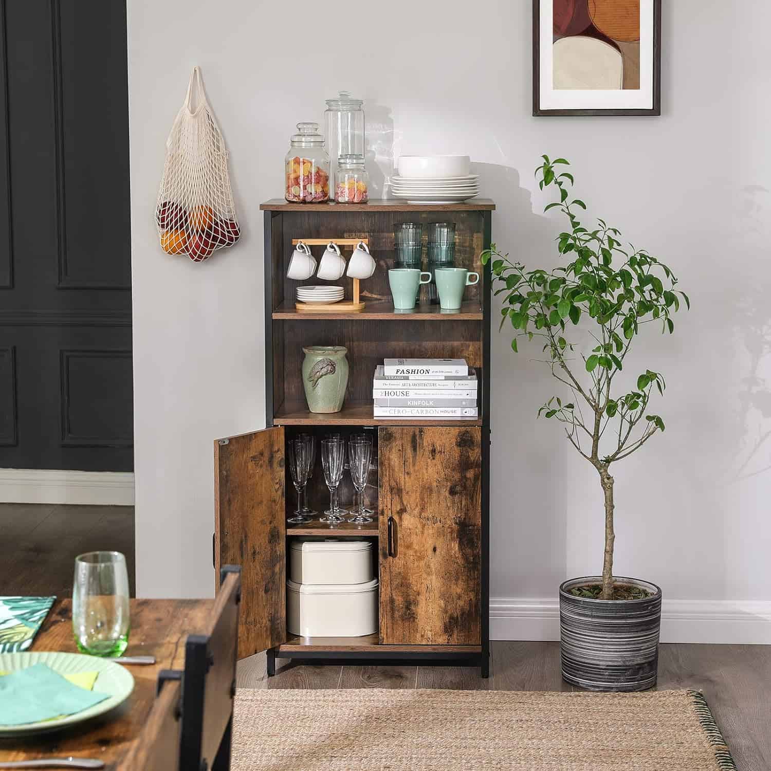 VASAGLE Comoda cu rafturi tip bufet, utilizare multifunctionala, stil industrial, 35x60x125cm, maro rustic Mob360