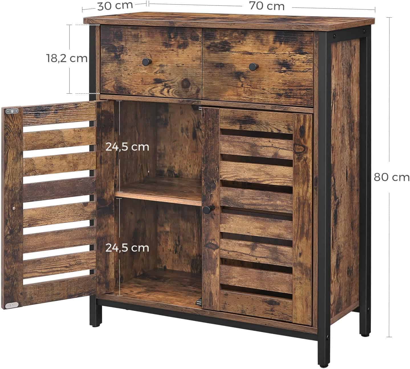 VASAGLE Comoda depozitare cu 2 sertare si polite, usi tip jaluzea, stil industrial, 30x70x80 cm, maro rustic Mob360