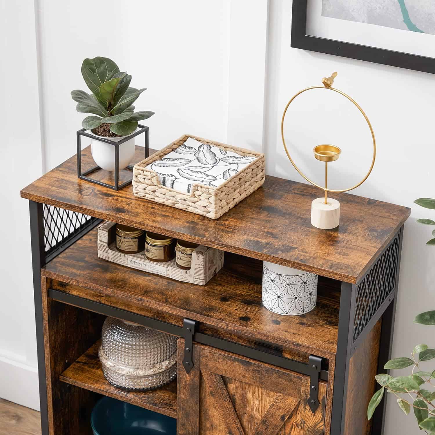VASAGLE Comoda depozitare cu usa glisanta tip hambar, 70x30x80 cm, maro rustic Mob360