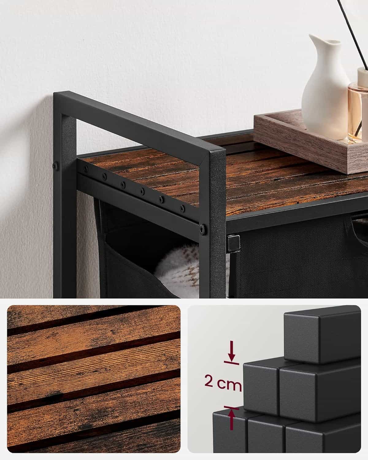 VASAGLE Cos de rufe, sac de rufe detasabil, raft, cadru metalic, 65L, 50x33x72 cm, maro rustic si negru Mob360 – produs disponibil în magazinul Mob360.