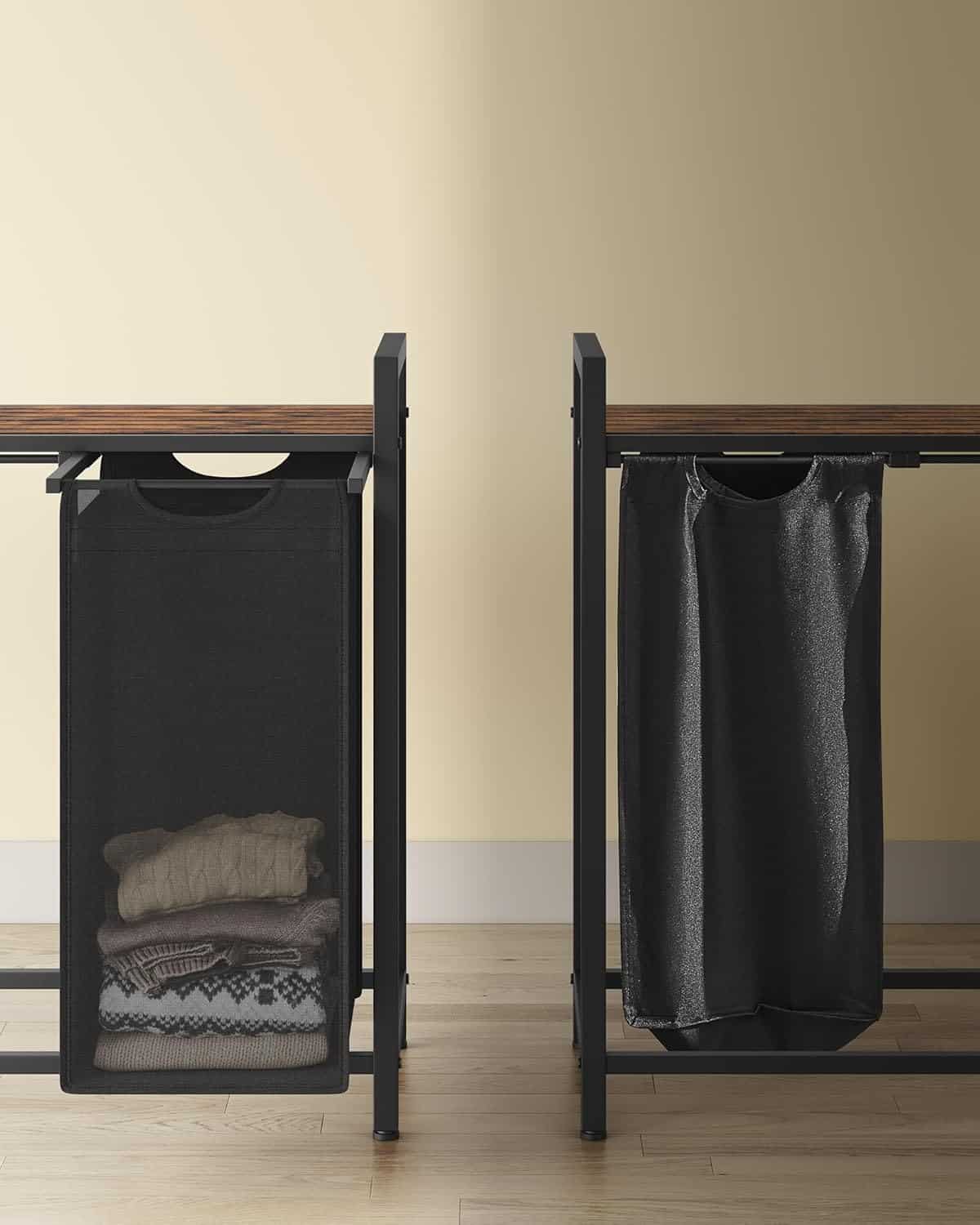 VASAGLE Cos rufe 4x40L, saci detasabili, raft superior si cadru metalic, 116x33x72 cm, maro si negru Mob360