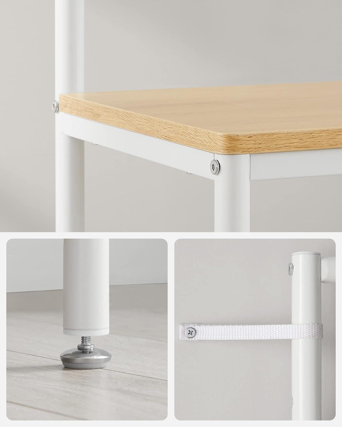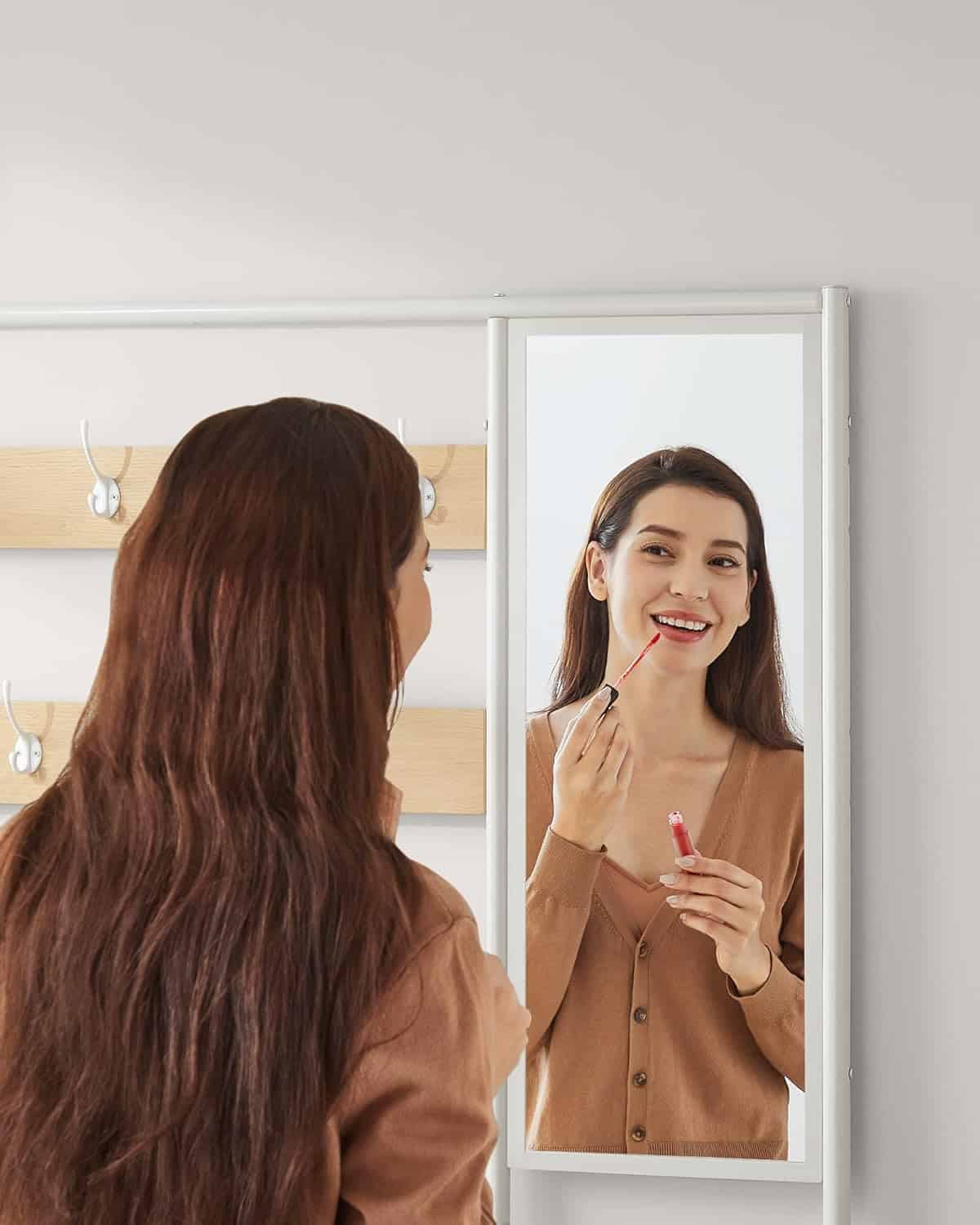 VASAGLE Cuier cu rafturi depozitare pantofi si oglinda, industrial, 35x98x180 cm, maro stejar si alb Mob360 – produs disponibil în magazinul Mob360.
