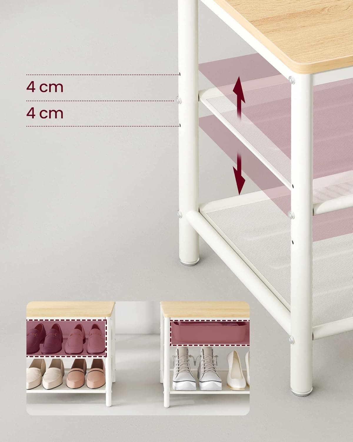 Specificatii tehnice Material: PAL (lemn compozit), metal Finisaj: Mat Culoare: Stejar/alb Latime: 98 cm Adancime: 35 cm Inaltime: 180 cm Numar carlige: 7 Oglinda: Da Dimensiuni oglinda: 80×30 cm Montaj oglinda: Stanga sau dreapta Rafturi pantofi: 2 Raft reglabil: Da, ajustare pe inaltime Capacitate maxima banca: 100 kg Scurta descriere Cuier multifunctional pentru hol, conceput pentru organizarea completa a hainelor, incaltamintei si accesoriilor. Include sapte carlige pentru haine si genti, banca pentru incaltare, doua rafturi pentru pantofi si oglinda montabila pe partea stanga sau dreapta. Raftul pentru pantofi este reglabil, permitand depozitarea diferitelor tipuri de incaltaminte. Designul modern in nuanta stejar si alb se integreaza usor in spatii contemporane. Caracteristici principale Cuier 4 in 1 cu oglinda, banca si rafturi pantofi Saptea carlige pentru haine, genti si palarii Oglinda montabila pe stanga sau dreapta Raft pentru pantofi reglabil pentru diferite tipuri de incaltaminte Structura stabila cu cadru metalic si picioare reglabile