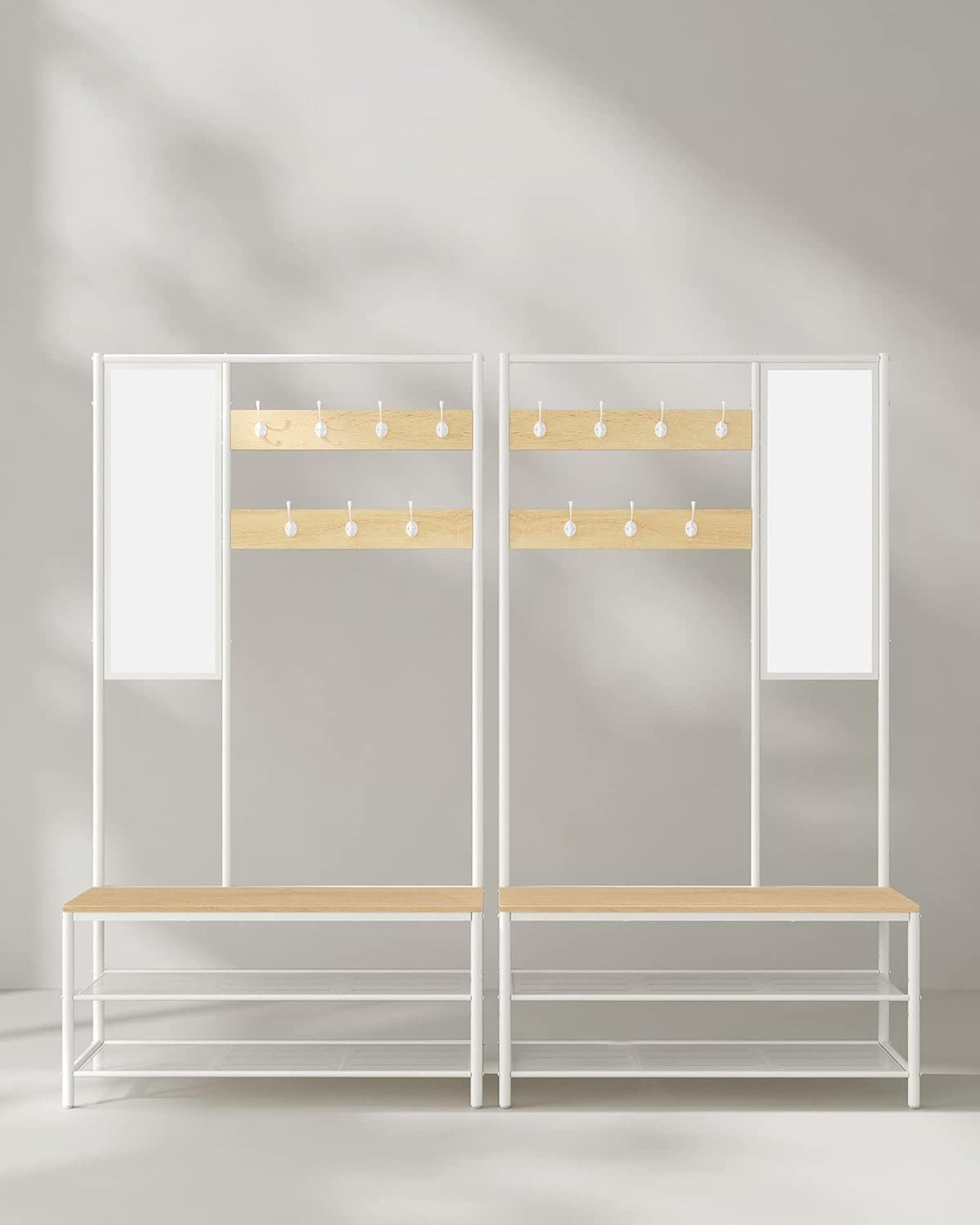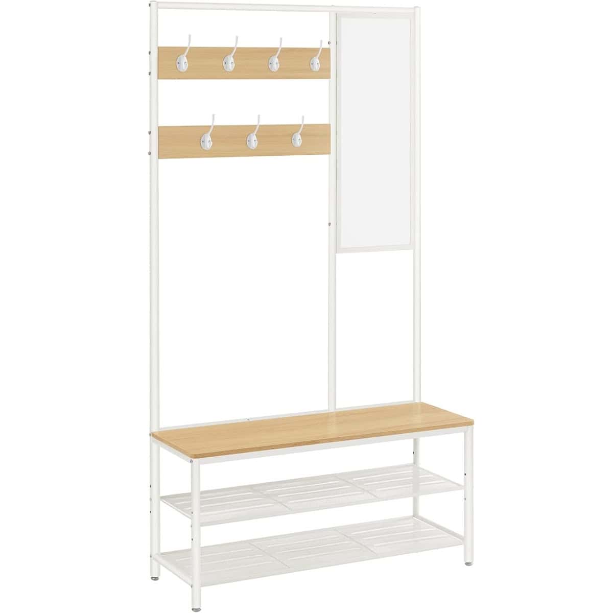 VASAGLE Cuier cu rafturi depozitare pantofi si oglinda, industrial, 35x98x180 cm, maro stejar si alb Mob360