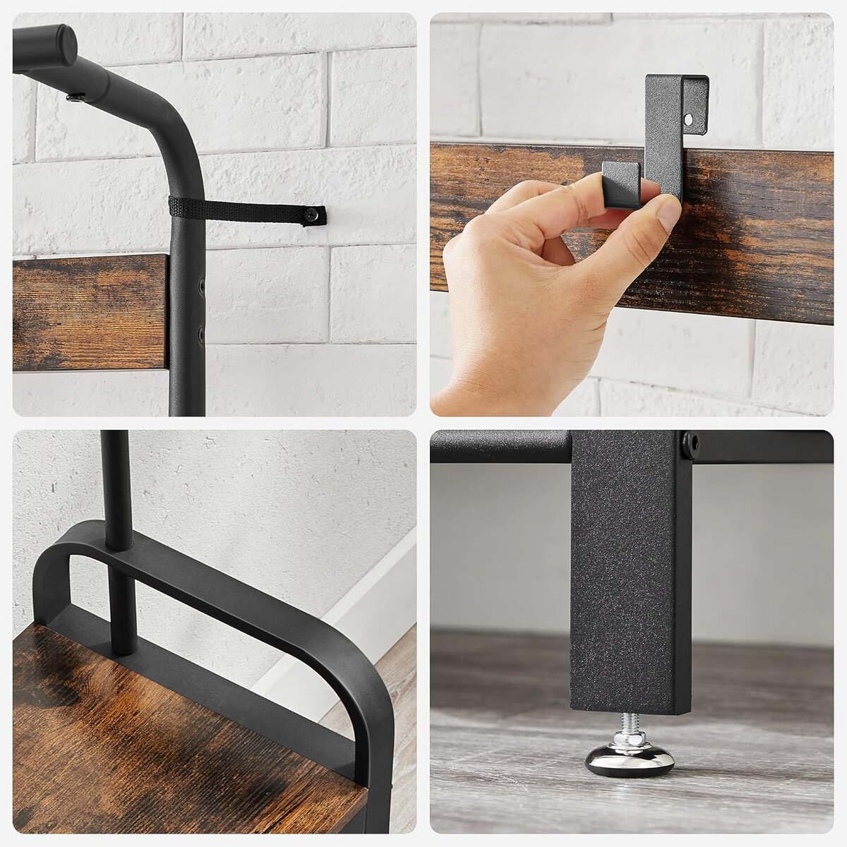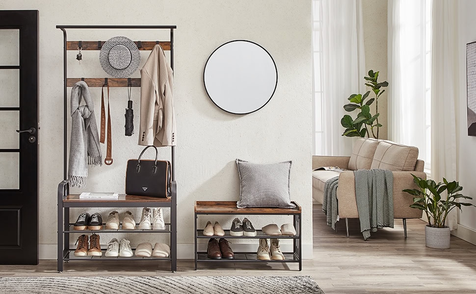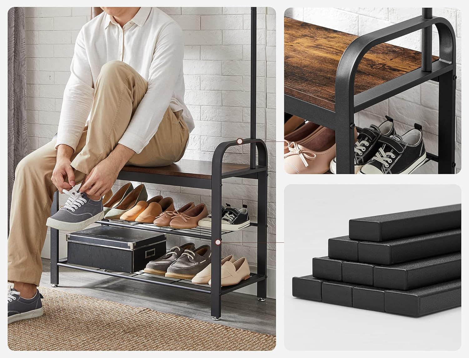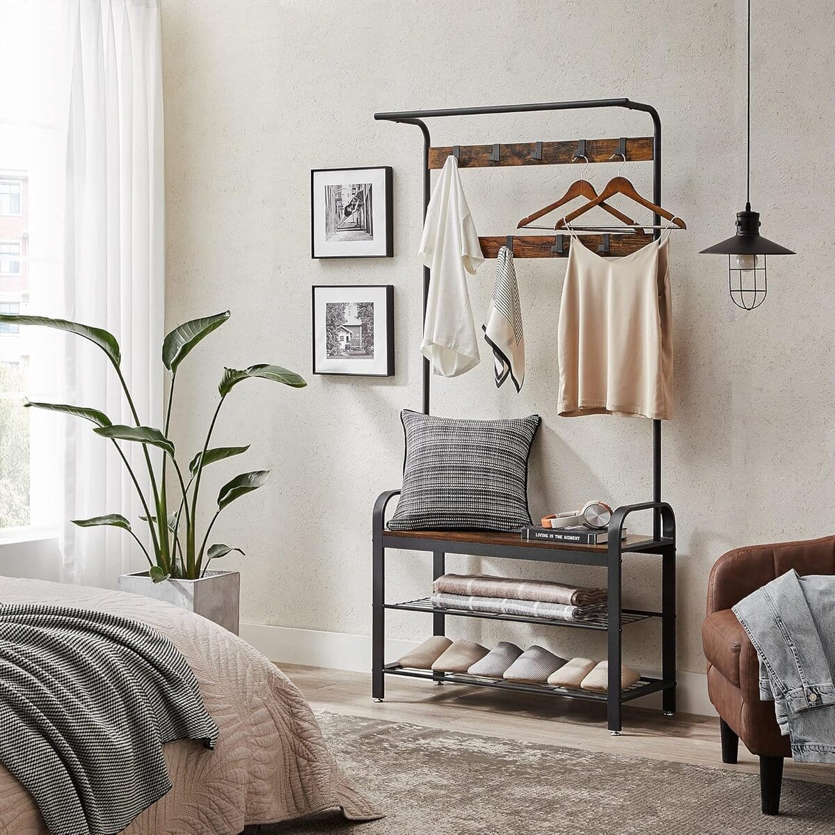 VASAGLE Cuier pentru hol cu banca si suport pantofi, stil industrial, 84x34x183 cm, maro rustic Mob360