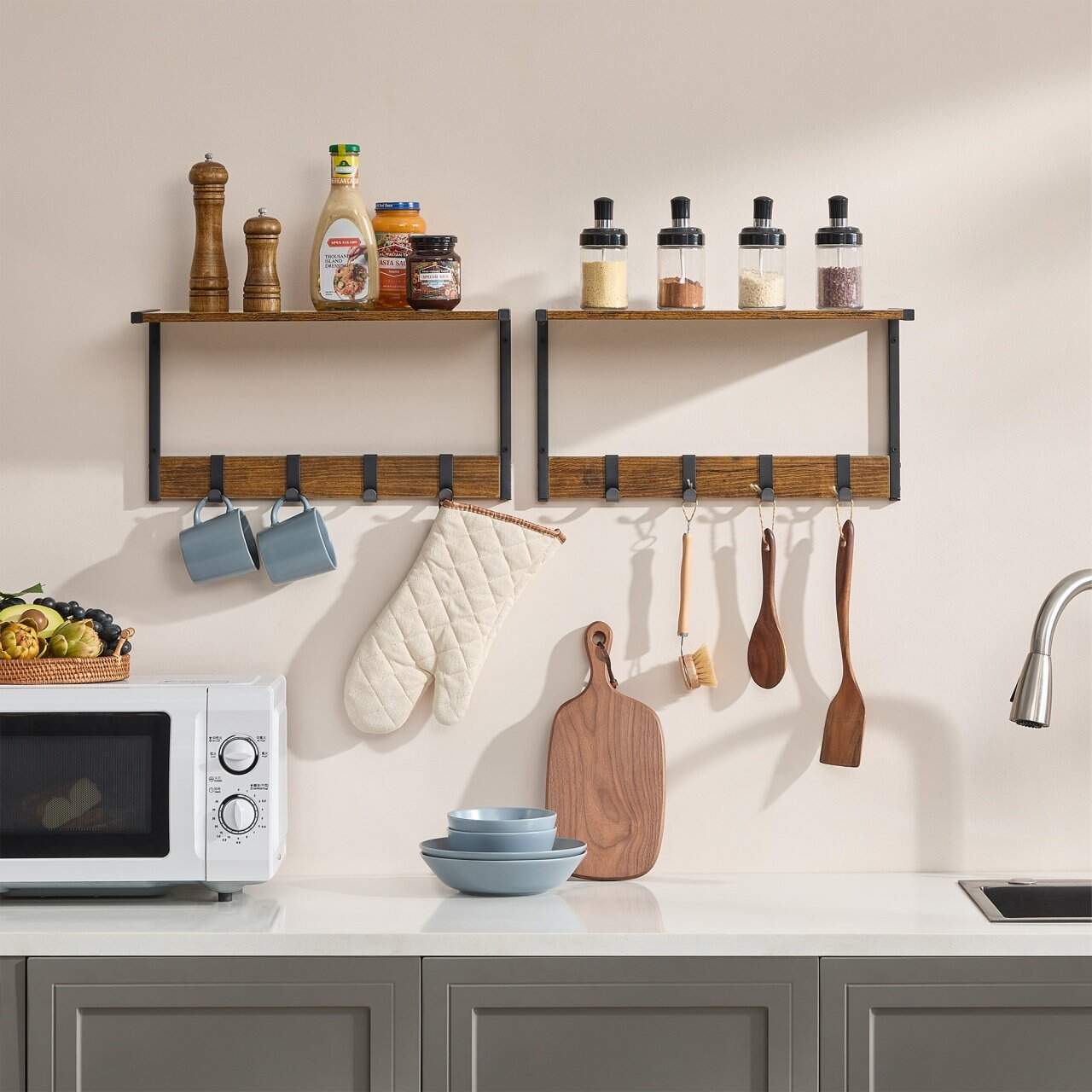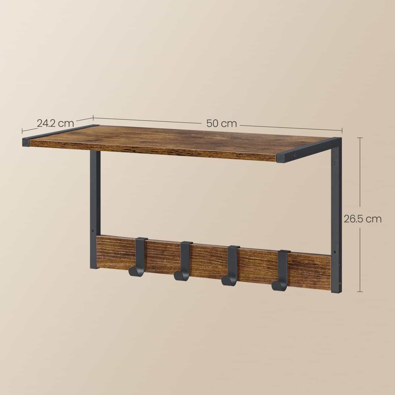 VASAGLE Cuier perete set 2 bucati, PAL si cadru metalic, 50x24x27 cm, maro rustic Mob360