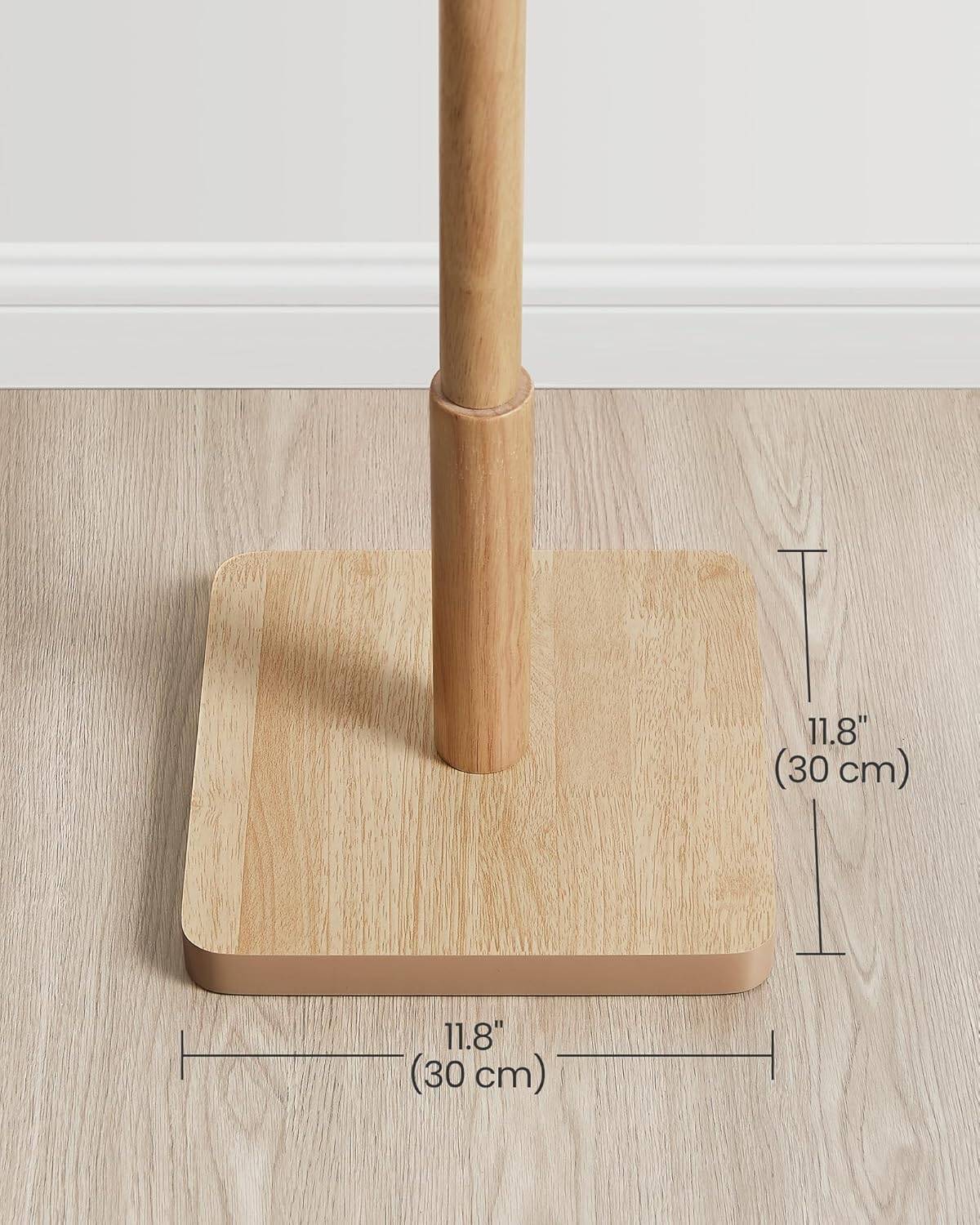 VASAGLE Cuier tip copac din lemn masiv, cu 8 carlige si baza patrata, 30x30x176 cm, bej natural Mob360