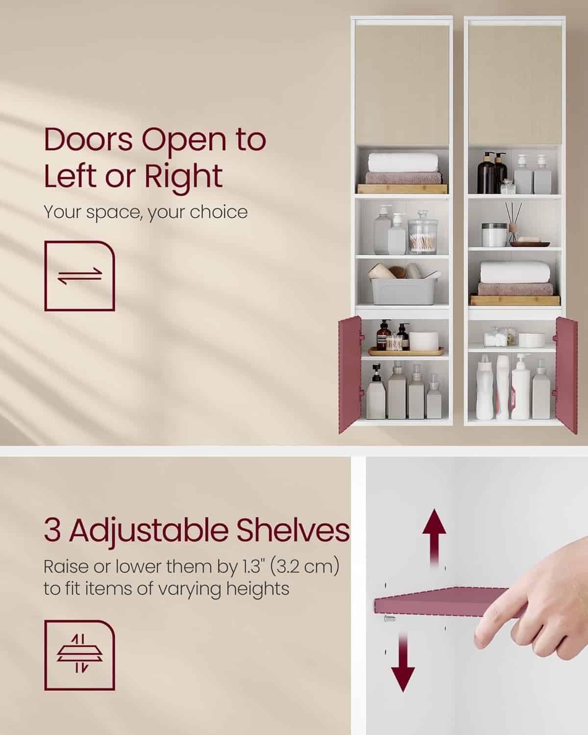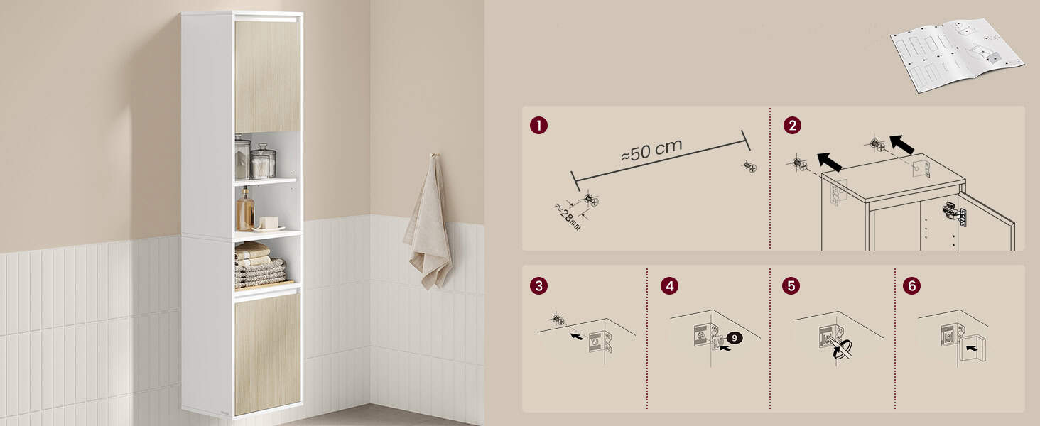 Usor de asamblat: Datorita pieselor marcate si a instructiunilor detaliate, puteti asambla acest dulap de baie fara probleme.