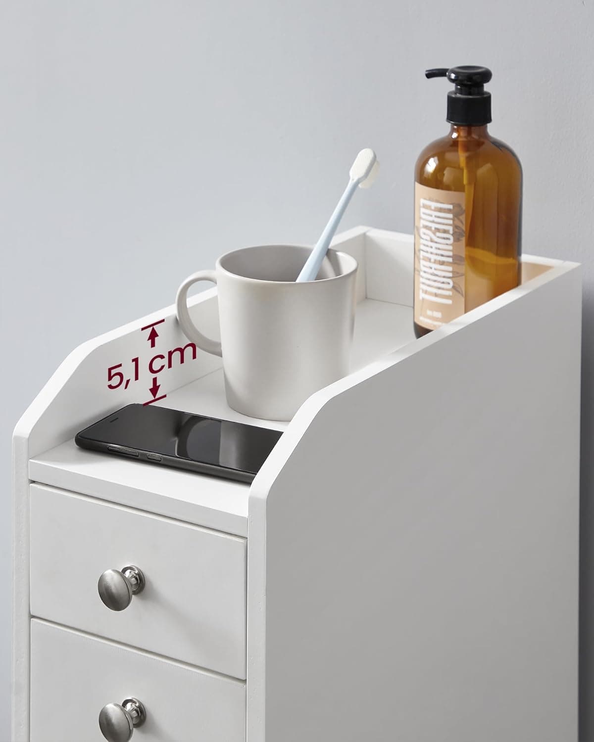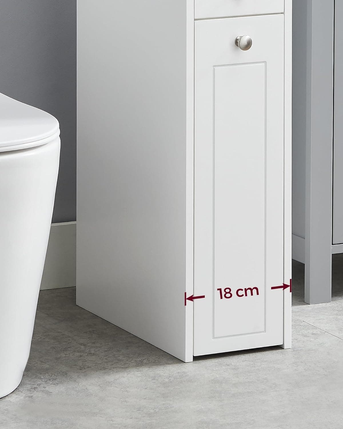 Specificatii tehnice: Brand: VASAGLE Material: MDF Dimensiuni produs: 40 x 18 x 70 cm (adancime x latime x inaltime) Culoare: Alb Montare: Pe podea Tip usa: Usa batanta Stil: Contemporan Utilizare recomandata: Baie, depozitare hartie igienica sau obiecte mici Caracteristici speciale: Sertar inferior cu roti, protectie anti-inclinare, format ingust Scurta descriere: Optimiza-ti spatiul cu acest dulap VASAGLE conceput special pentru baile mici sau zonele inguste. Cu un design vertical si compact, dulapul ofera depozitare inteligenta pentru hartie igienica, articole de igiena sau chiar ustensile mici de bucatarie. Sertarul inferior cu roti gliseaza usor, iar compartimentarea interioara te ajuta sa mentii totul organizat. Caracteristici principale: Design ingust ideal pentru spatii mici, intre perete si toaleta Sertar inferior cu roti si placa de oprire integrata Compartimentare pe 4 niveluri pentru articole diverse Blat superior pentru telefon sau obiecte la indemana Fabricat din MDF rezistent, finisaj alb modern Include sistem anti-inclinare pentru siguranta sporita Usor de asamblat cu instructiuni clare si piese marcate