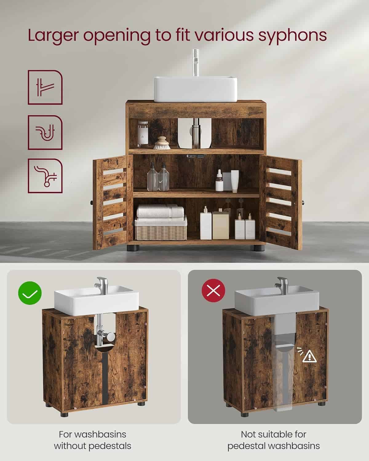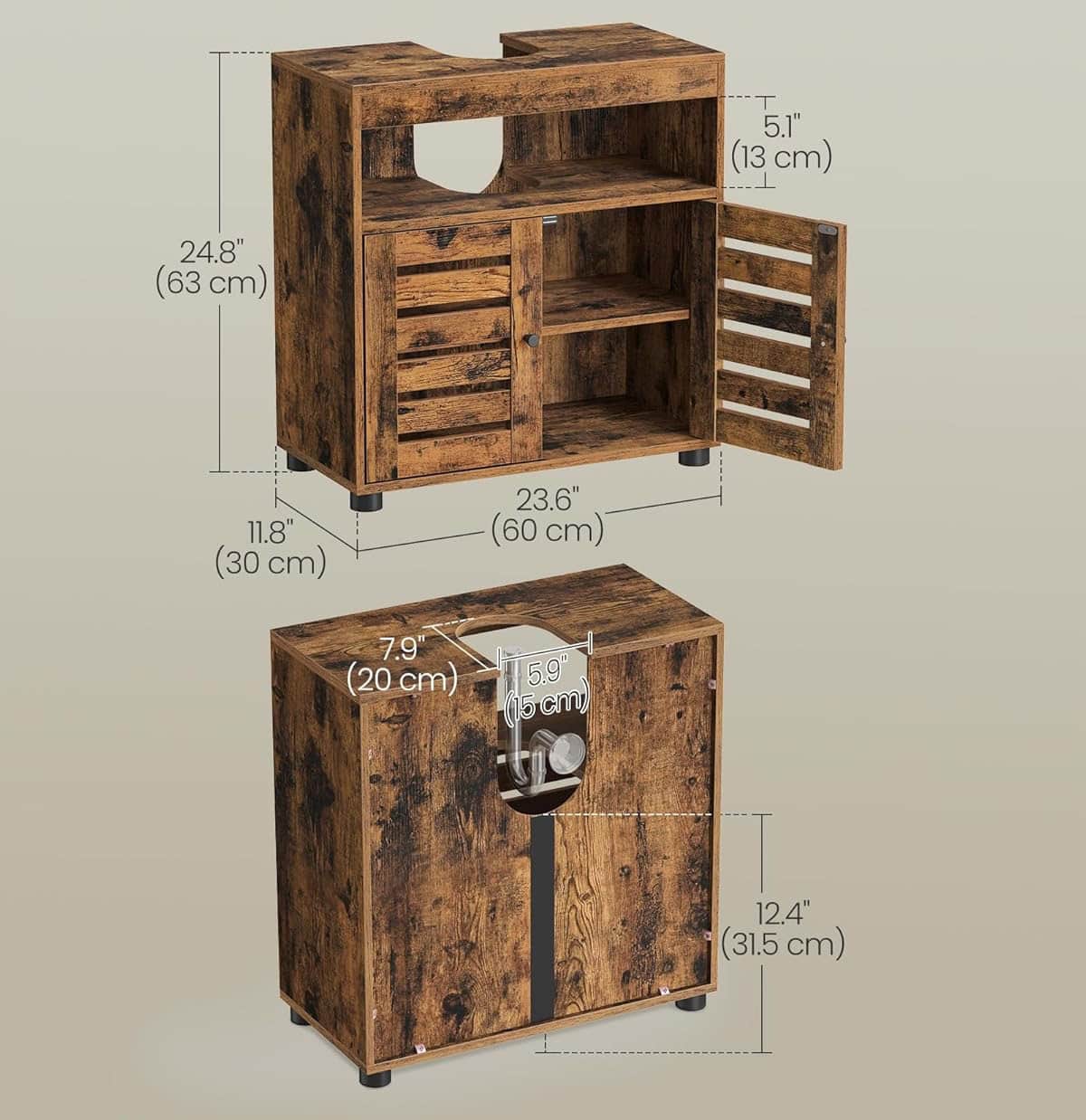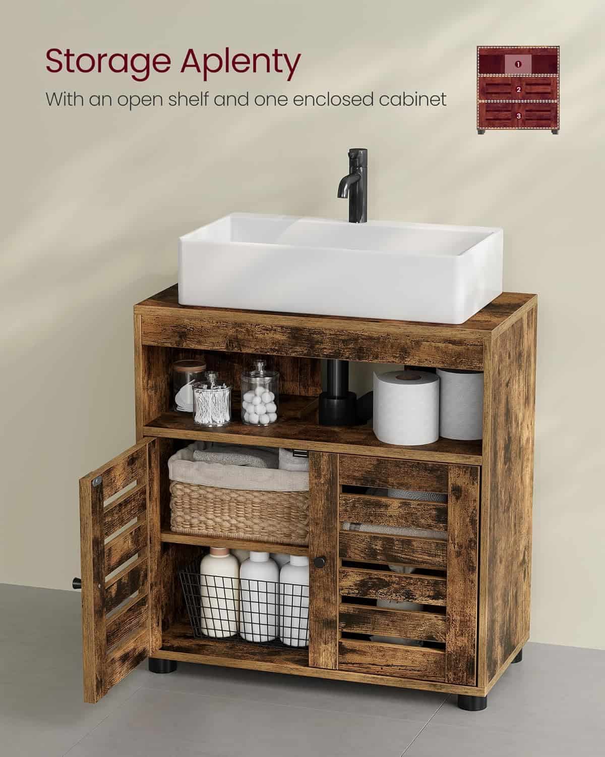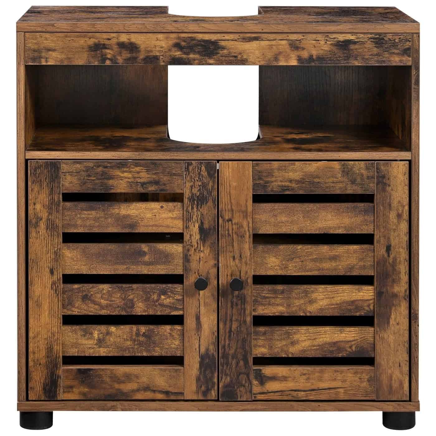 VASAGLE Dulap baie lavoar cu 2 usi tip jaluzea, raft reglabil, 60x30x63 cm, maro rustic Mob360