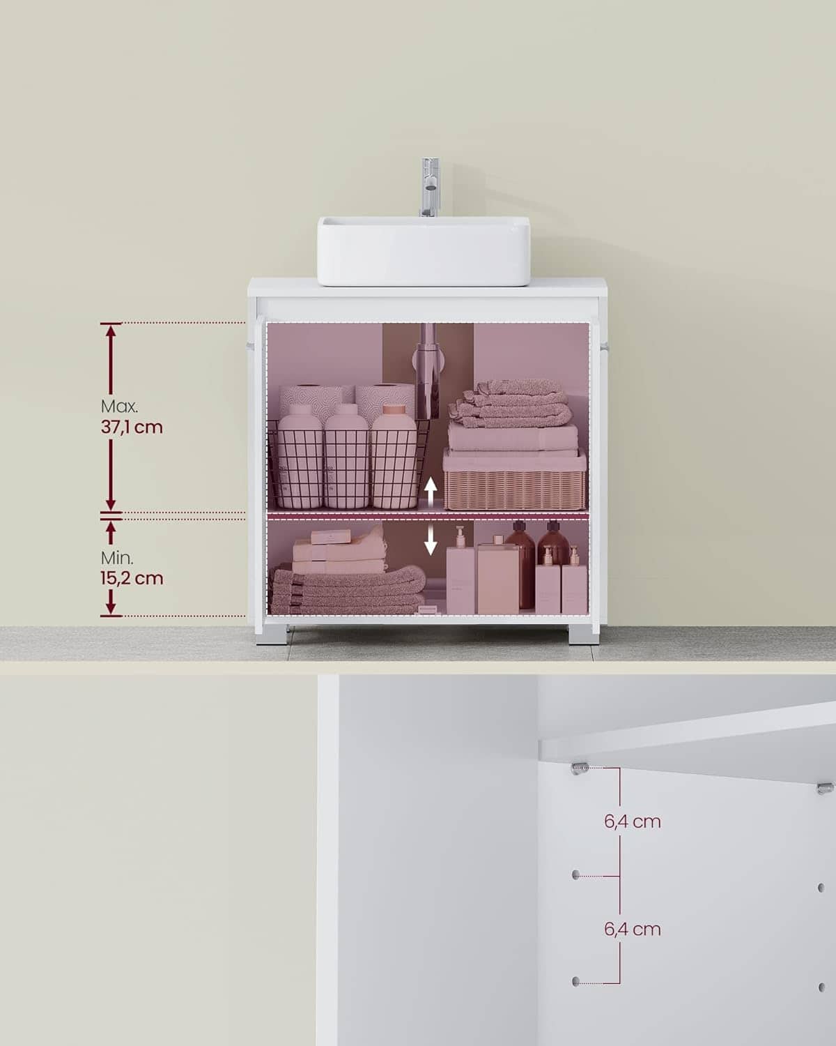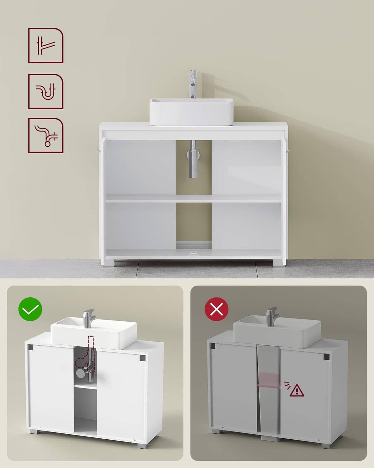 - Dulapul de baie VASAGLE pentru lavoar fara coloana este o solutie practica pentru organizarea spatiului din baie. Designul modern, cu linii simple si finisaj alb, se integreaza usor in orice decor. Compartimentele spatioase ascunse in spatele usilor permit depozitarea ordonata a produselor de curatenie, prosoapelor si articolelor de igiena. Caracteristici principale:
