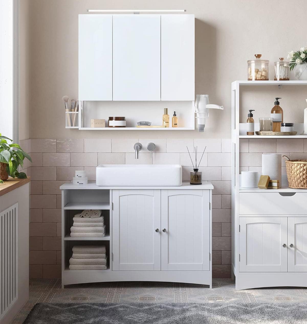 VASAGLE Dulap de baie de perete, 3 usi cu oglinda, compartiment deschis, 15x70x70cm, alb Mob360 este disponibil în magazinul Mob360.