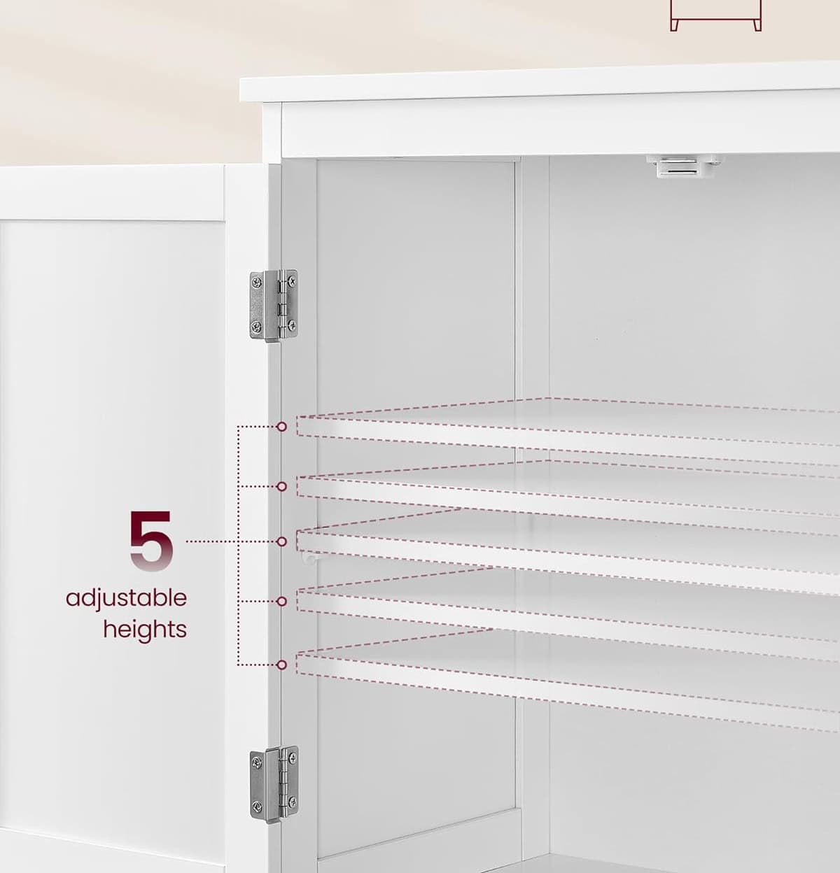 Raftul din dulapul superior este reglabil in 5 pozitii, permitandu-va sa depozitati articole de inaltimi diferite.Fabricat din MDF de inalta calitate si echipat cu un dispozitiv anti-inclinare, aceasta unitate de depozitare pentru baie este durabila si stabila.