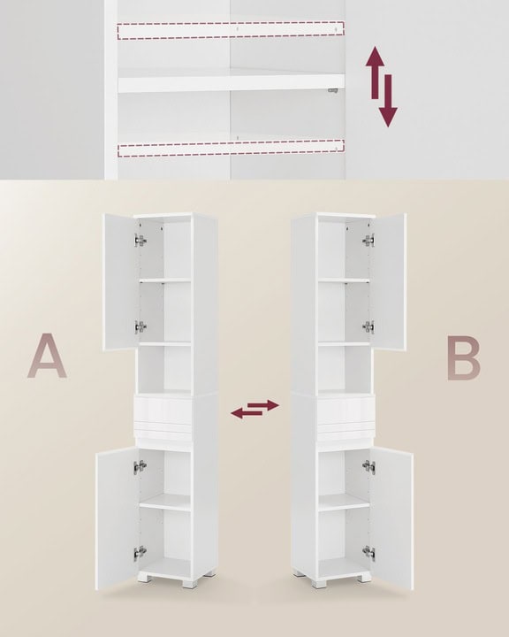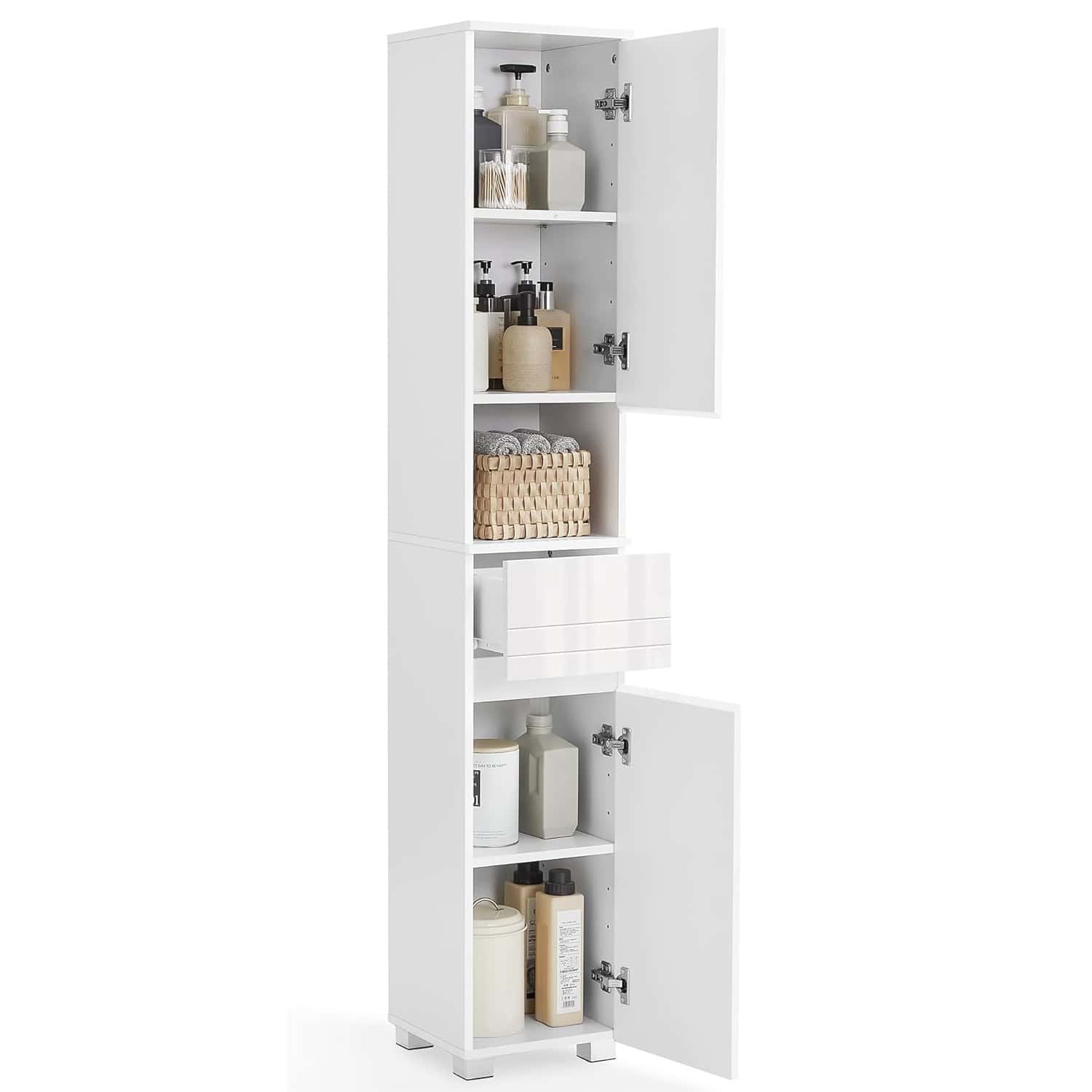 VASAGLE Dulap de baie tip coloana, din MDF, cu sertar si 2 usi, 30x30x170cm, alb Mob360 – produs disponibil în magazinul Mob360.