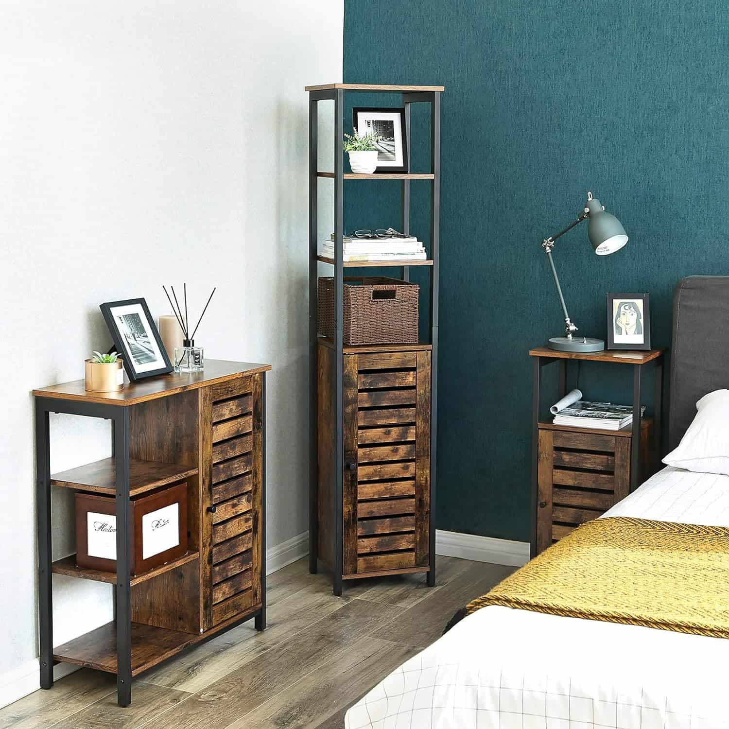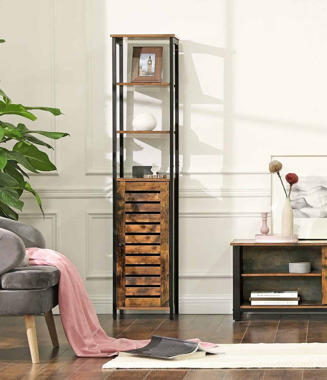 VASAGLE Dulap de depozitare in stil turn, 5 rafturi, compartiment cu usa, 37x30x167cm, maro rustic Mob360