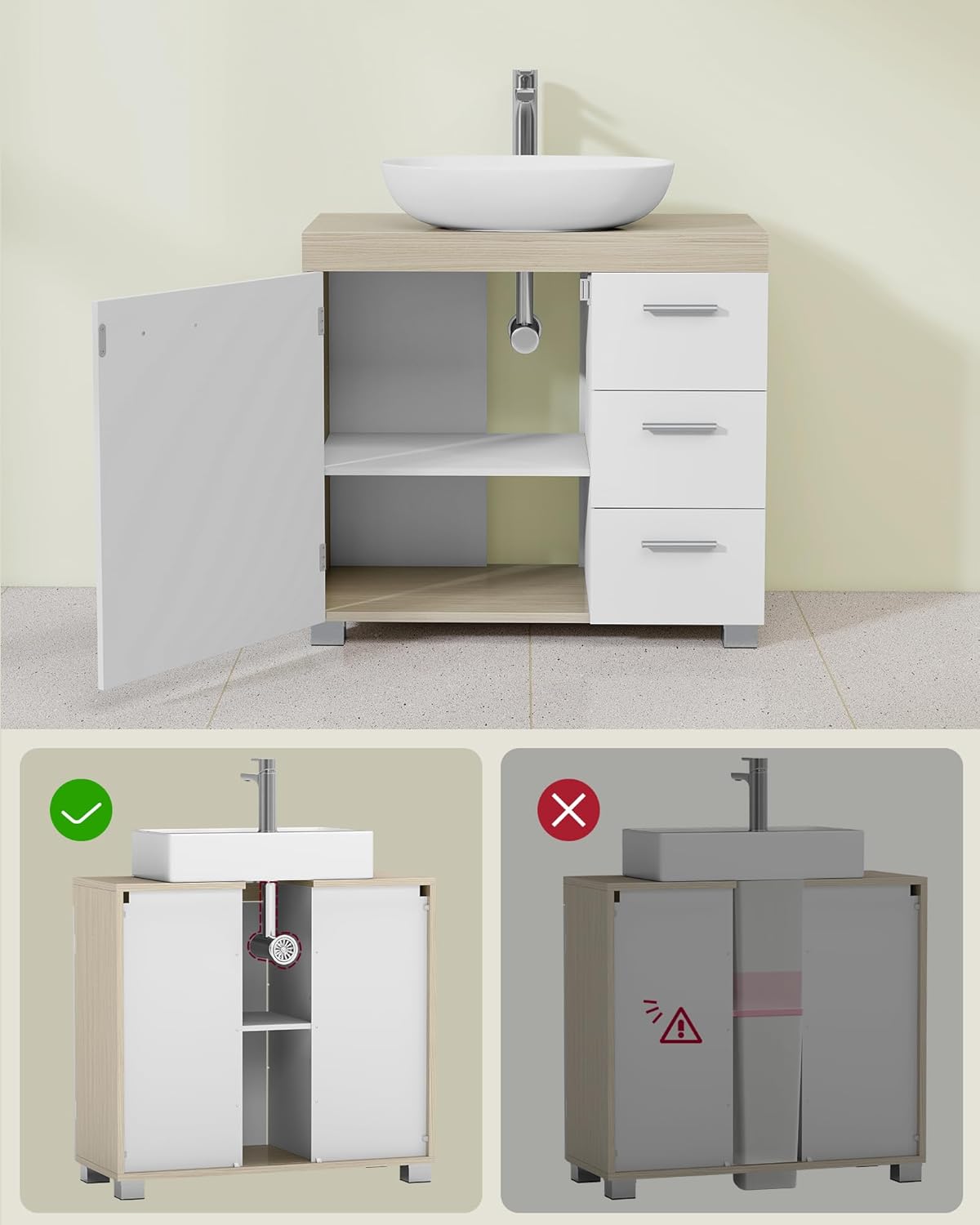 VASAGLE Dulap lavoar baie cu 3 sertare si 2 compartimente, MDF, 30x70x64 cm, alb si bej Mob360