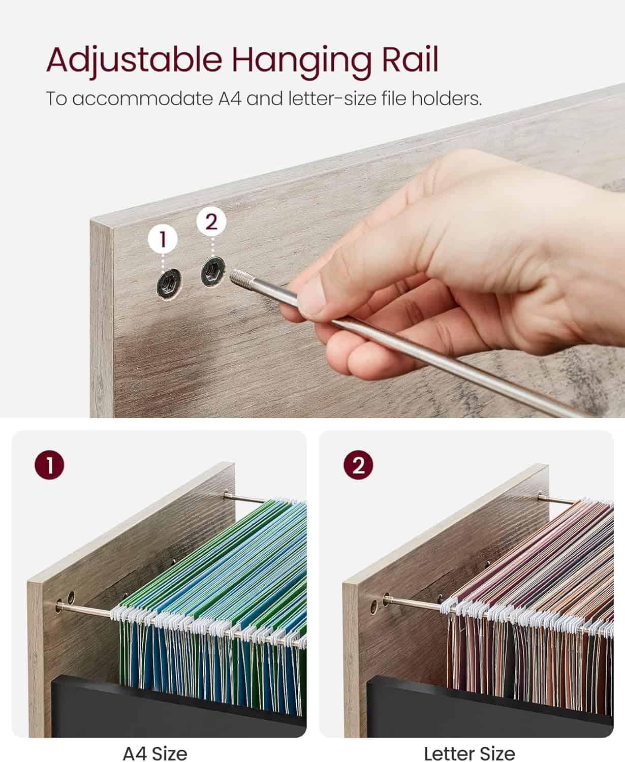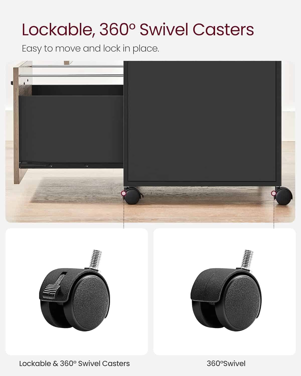VASAGLE Dulap mobil 42x44x69 cm, cu 2 sertare si roti cu frana, compartiment deschis si suport dosare, PAL si otel, gri si negru Mob360 – produs disponibil în magazinul Mob360.