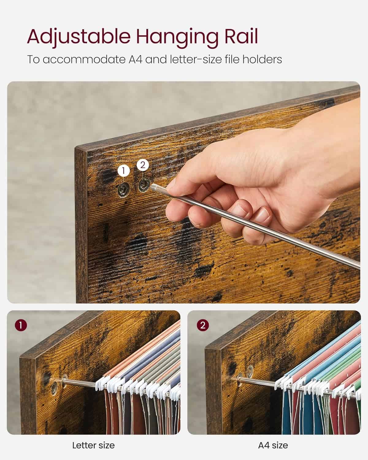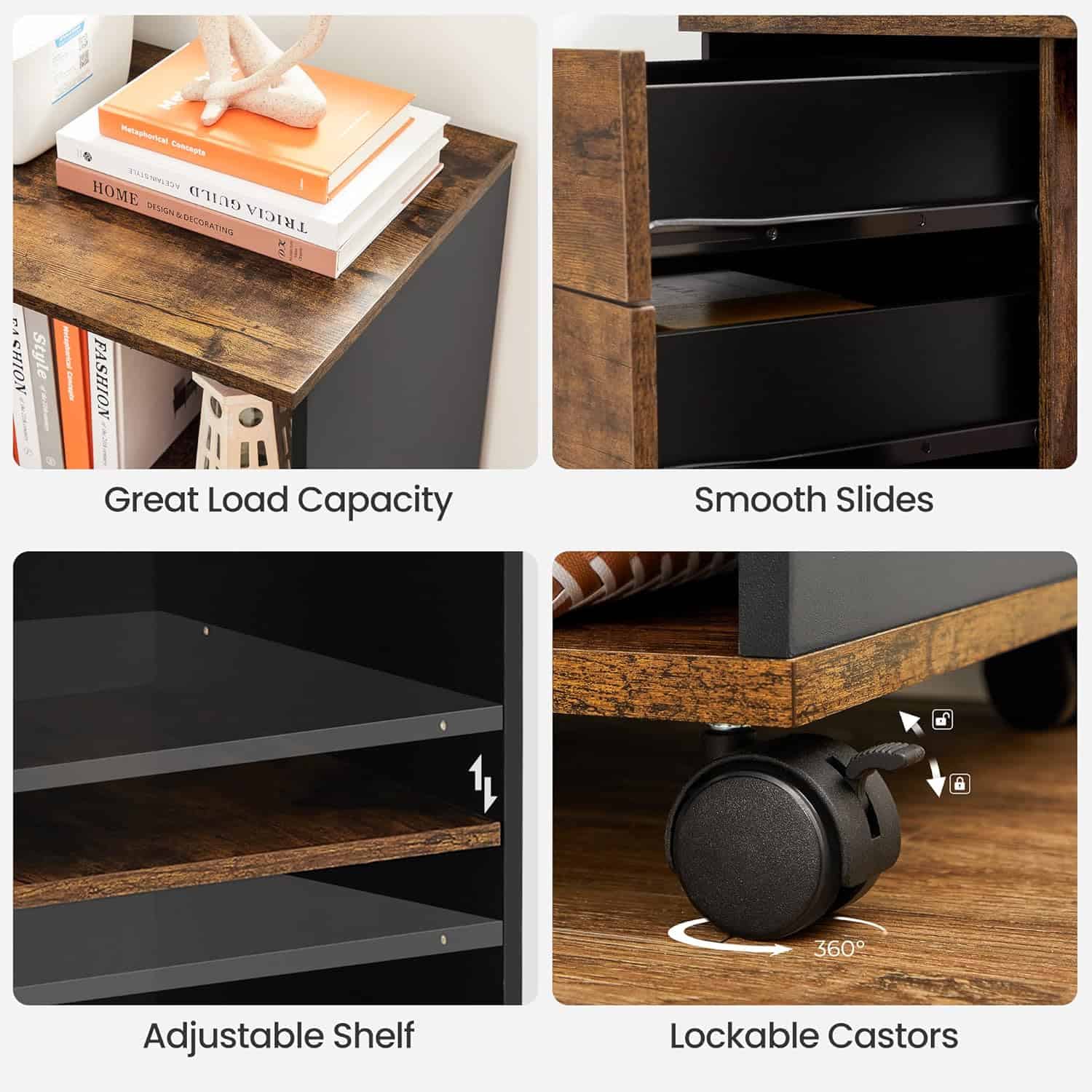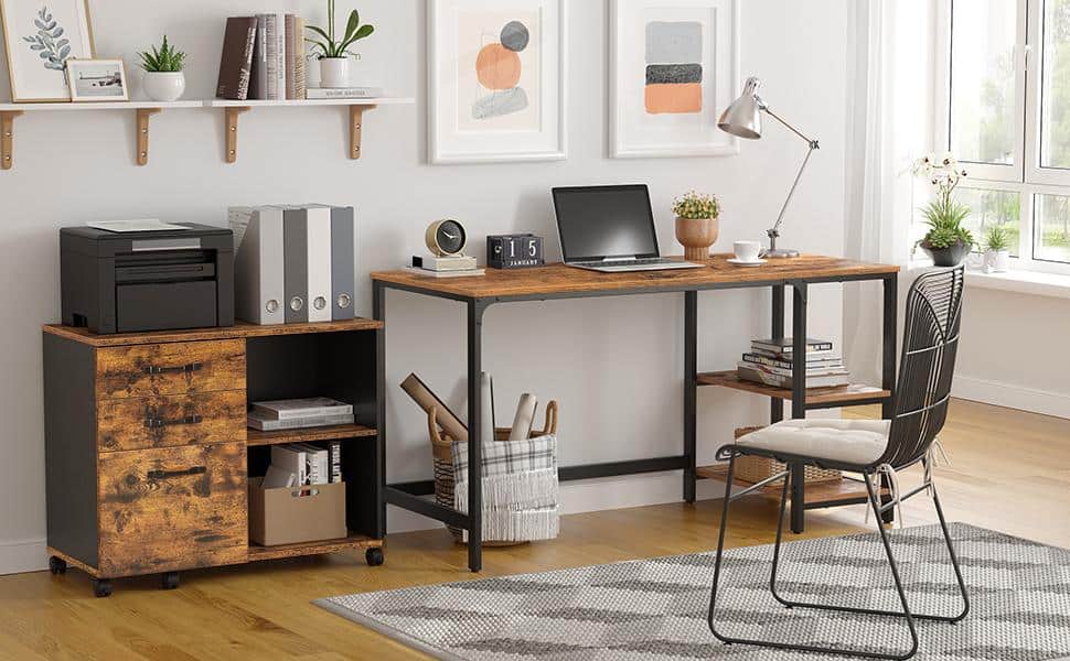VASAGLE Dulap mobil tip rollbox pentru birouri, sertar cu sina suport dosare, stil industrial, 40x80x66 cm, maro rustic Mob360 – produs disponibil în magazinul Mob360.