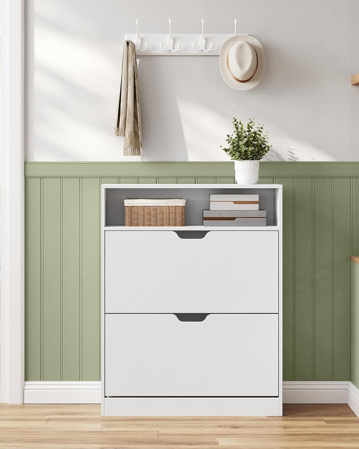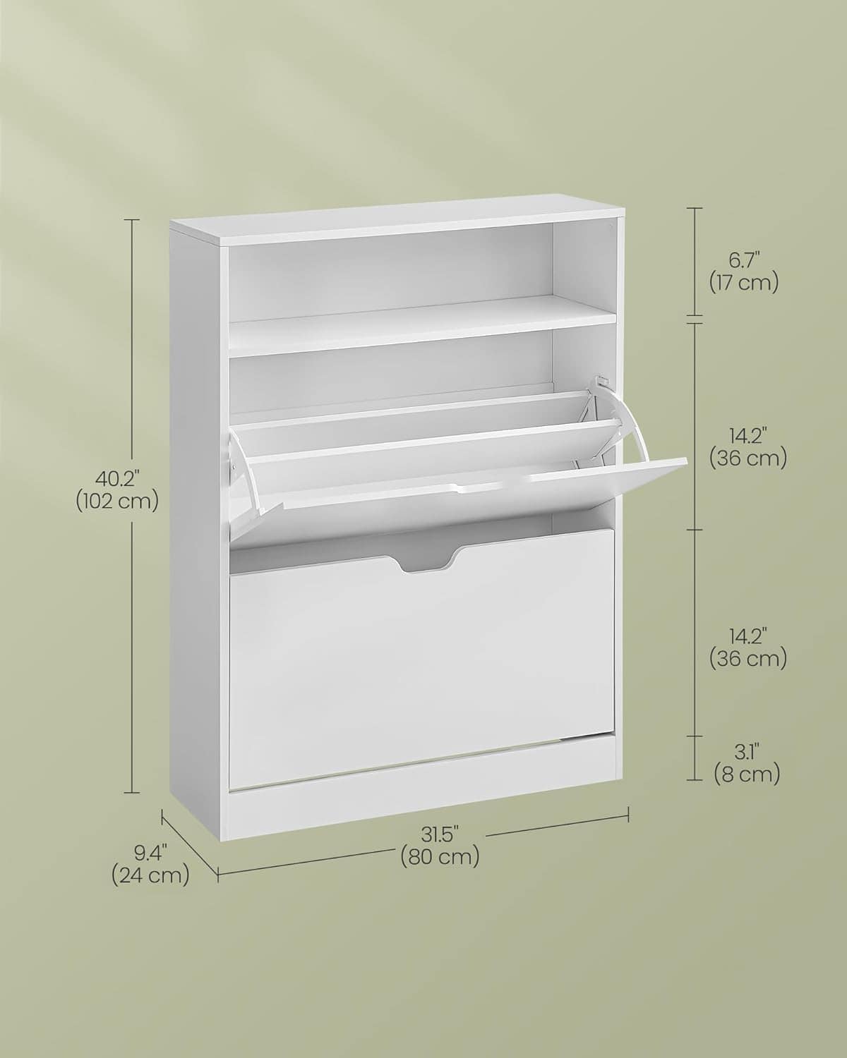 VASAGLE Dulap pantofi 80x24x102 cm, cu 2 usi rabatabile, separator reglabil si raft superior, PAL alb mat Mob360