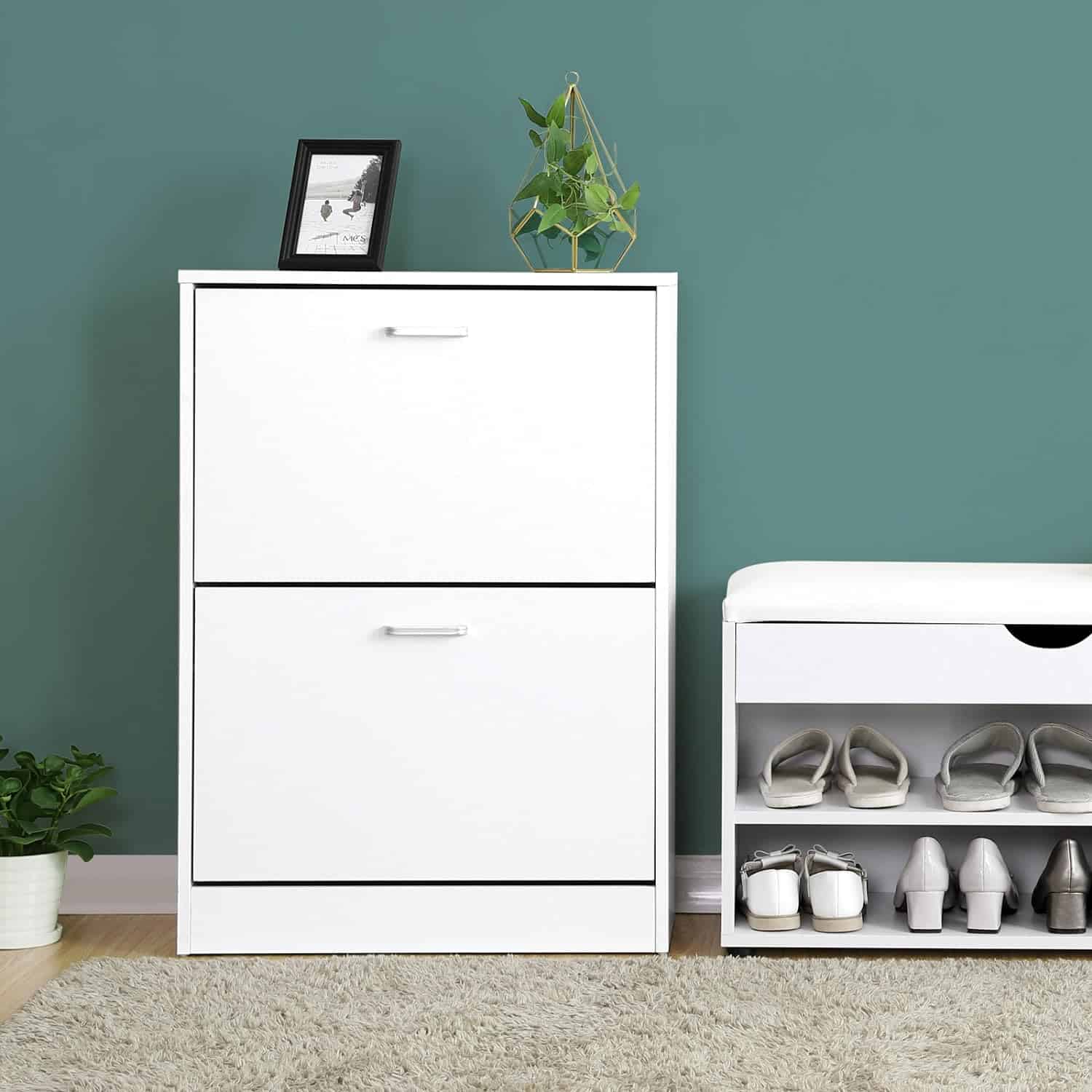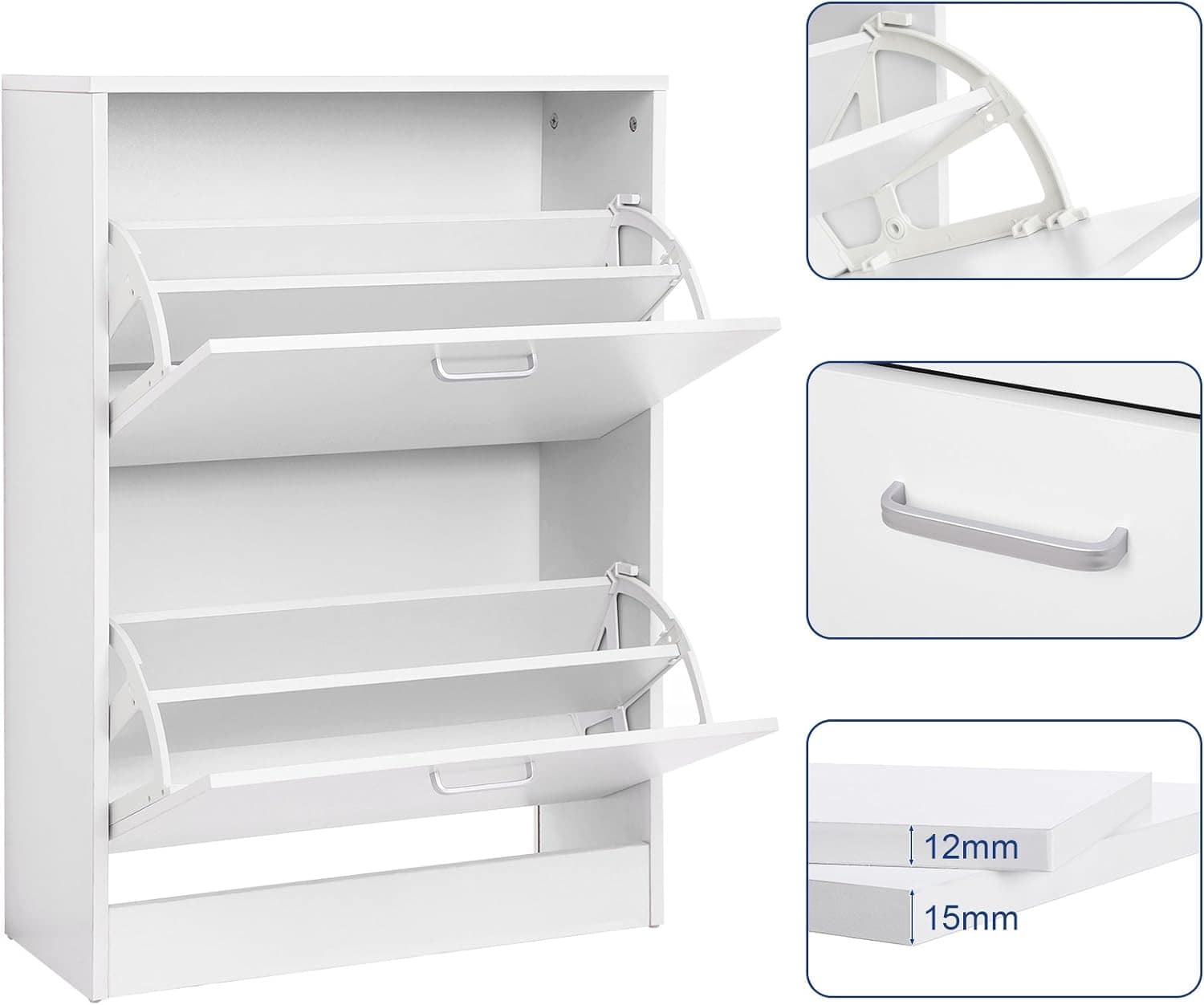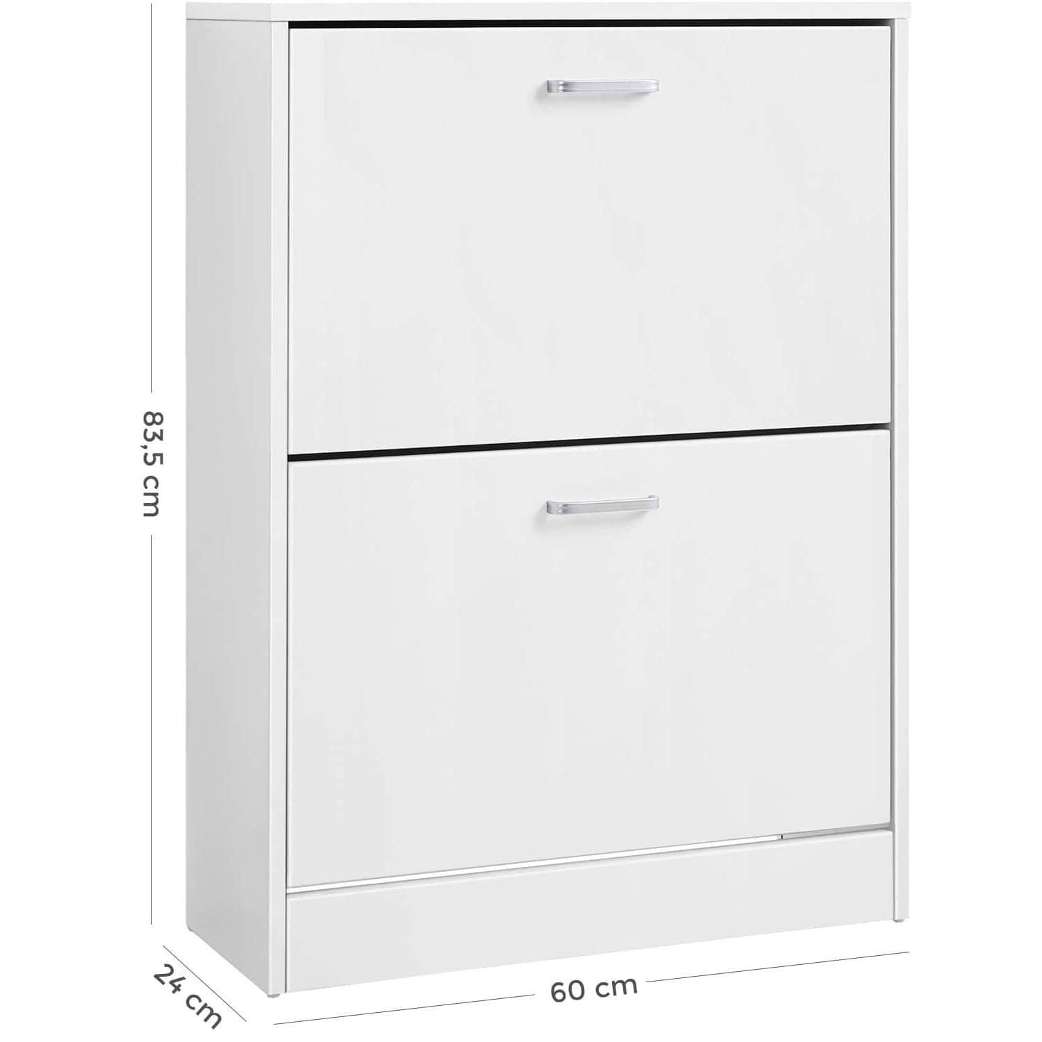 VASAGLE Dulap pantofi cu 2 usi rabatabile, din MDF, pentru 8-12 perechi, 60x24x84cm, alb Mob360