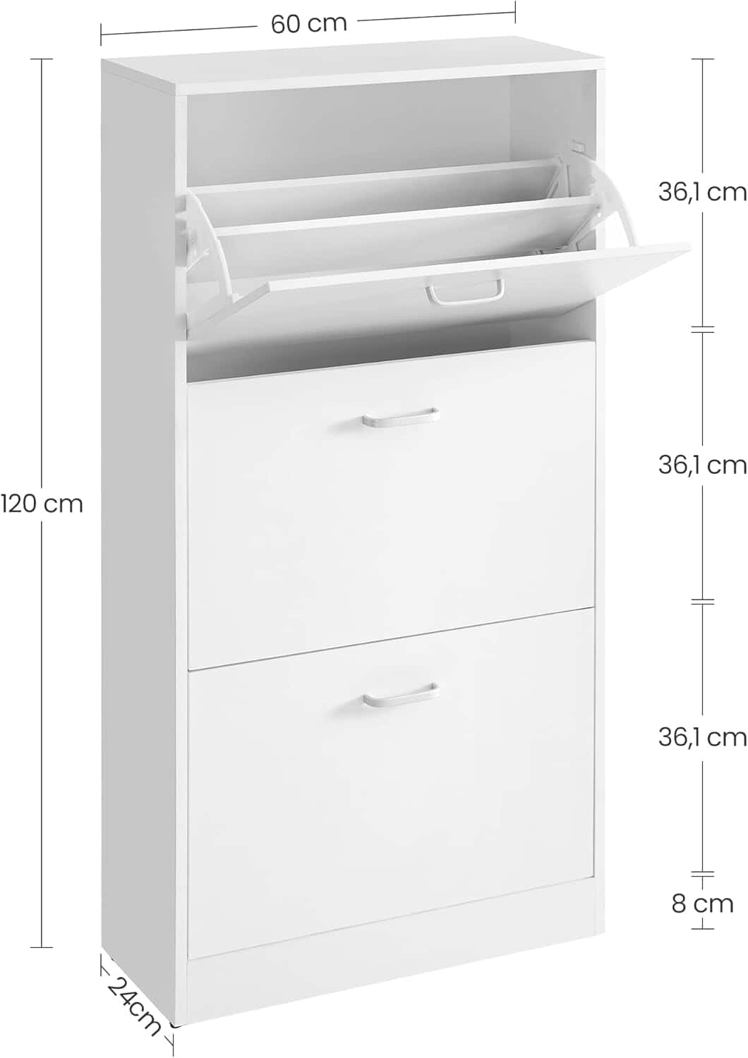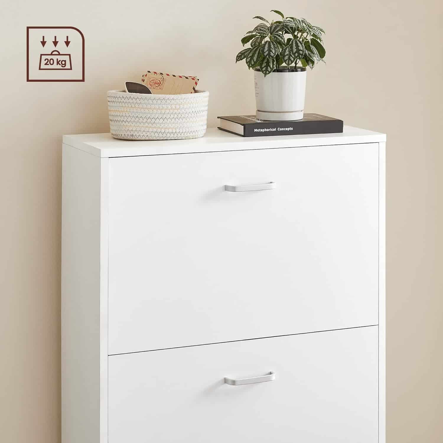 VASAGLE Dulap pantofi cu 2 usi rabatabile, pentru 12-18 perechi, 60x24x120 cm, alb Mob360