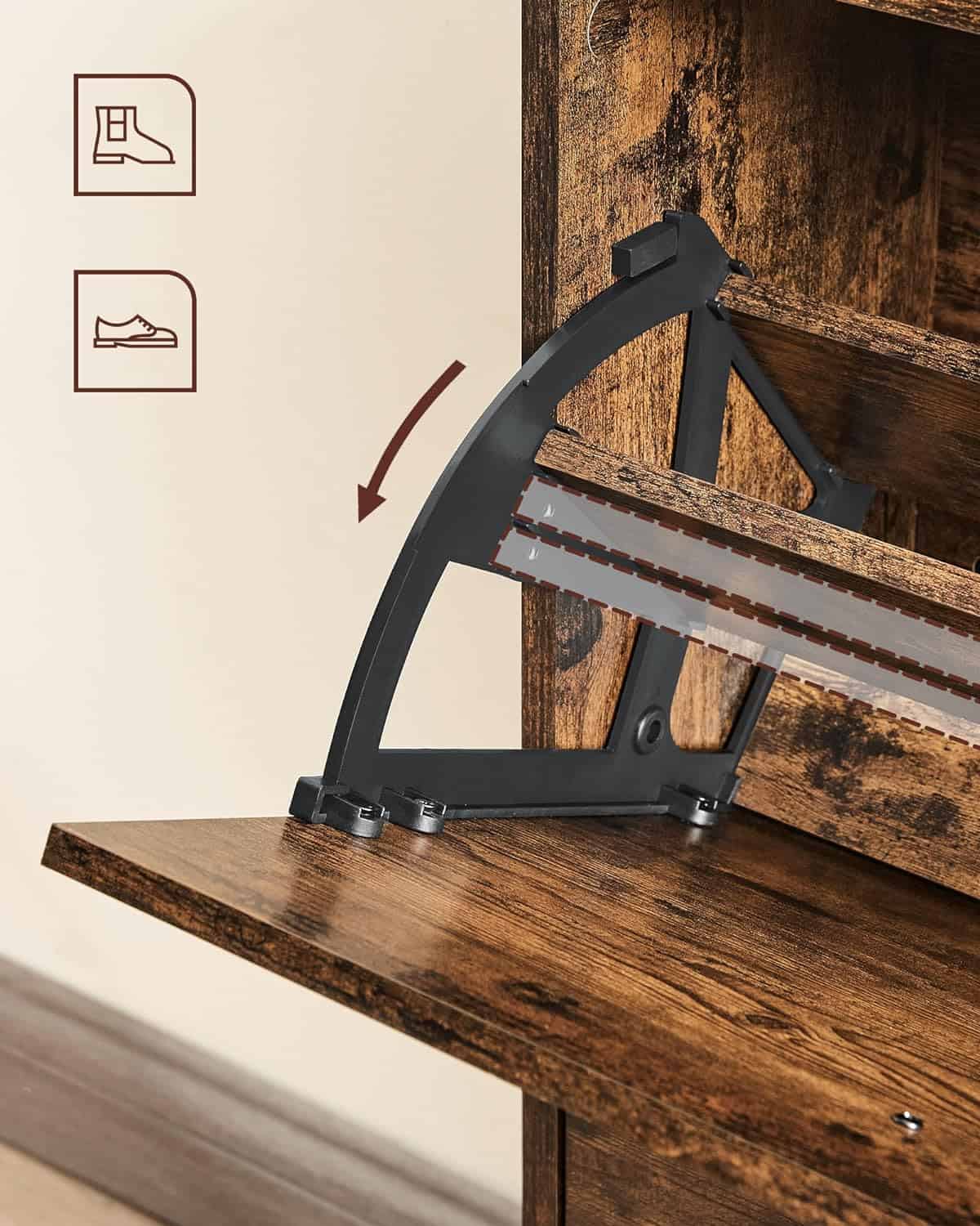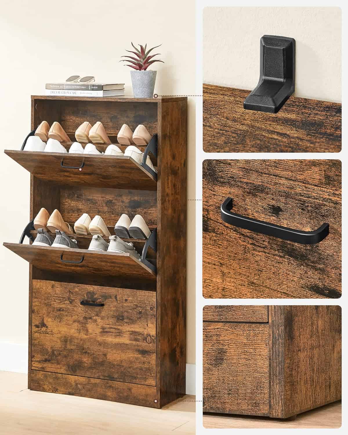 VASAGLE Dulap pantofi cu 3 usi rabatabile, din lemn, pentru 12-18 perechi, 60x24x120cm, maro rustic Mob360 – produs disponibil în magazinul Mob360.