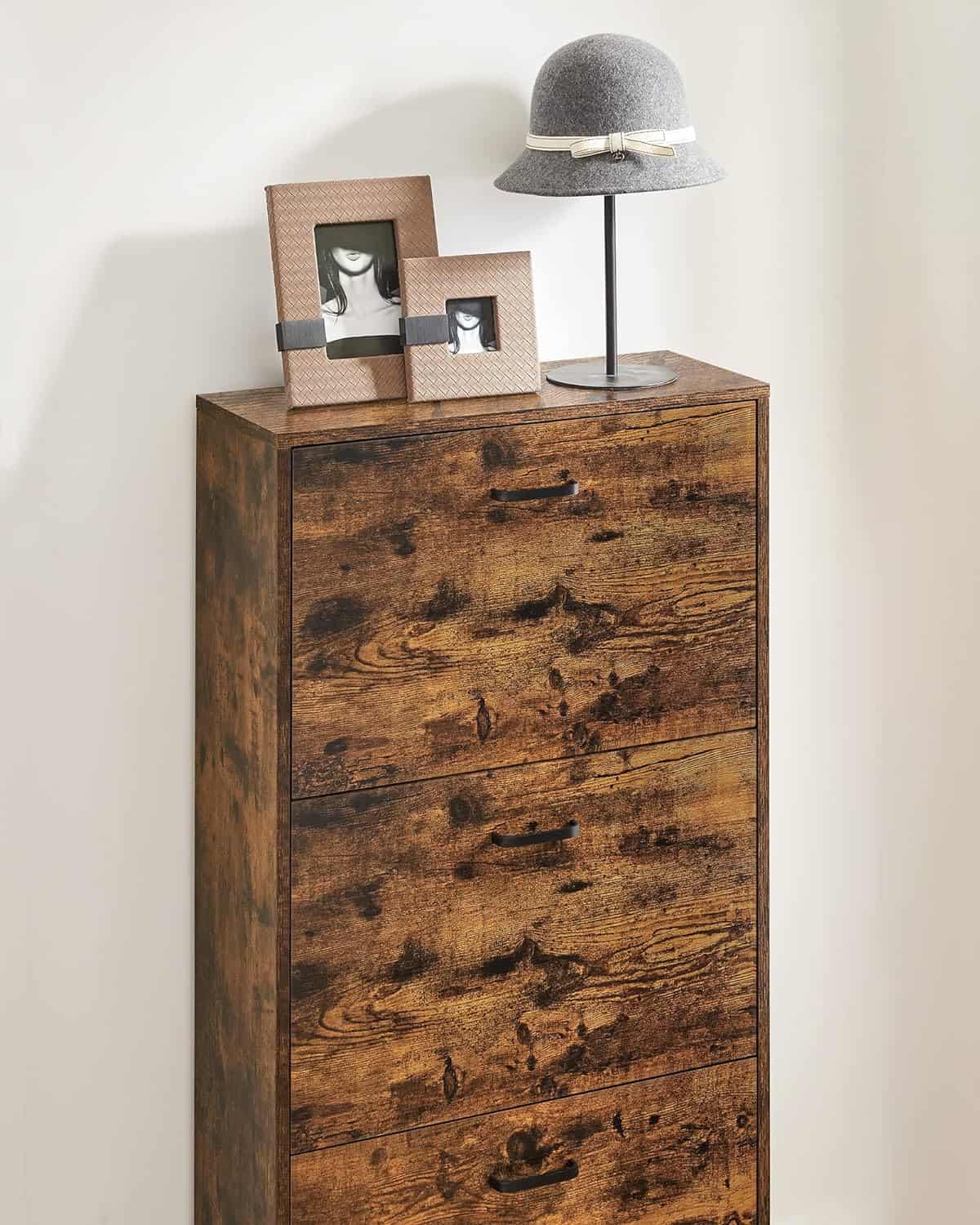 Marca: VASAGLE Culoare: Maro Dimensiunile produsului: 24D x 60W x 120H centimetri Despre acest articol Acest depozit de pantofi subtire maximizeaza spatiul vertical, mentinand in acelasi timp accesul usor la pantofi pentru a usura senzatia frenetica a diminetii de luni; atunci cand este inchis, este si o masa pe hol pentru cheile tale sau o vaza cu flori – o alegere castigatoare pentru toate!Acest depozit de pantofi versatil si sic emana farmec industrial, face o declaratie in spatiul tau si impresioneaza viitorii tai oaspeti cu un „wow!”Proiectat cu 3 sertare duble, suportul inteligent pentru pantofi poate tine cu usurinta 18 perechi de pantofi de dama sau 12 pantofi pentru barbati; botine si tocuri inalte? Nu va temeti, doar scoateti separatorul reglabil din fiecare sertar!Structura solida este conectata prin suruburi 3 in 1, care elimina abaterile si fisurile cauzate de suruburile autofiletante si ii asigura rezistenta pentru anii urmatori; kitul anti-rasturnare imbunatateste si mai mult stabilitatea generala.Un suport de pantofi pe 3 niveluri cu usi rabatabile si un design subtire pentru colectia dvs. de pantofi, piese numerotate pentru asamblare usoara si o modalitate simpla de a va aranja intrarea, dormitorul sau dulapul.