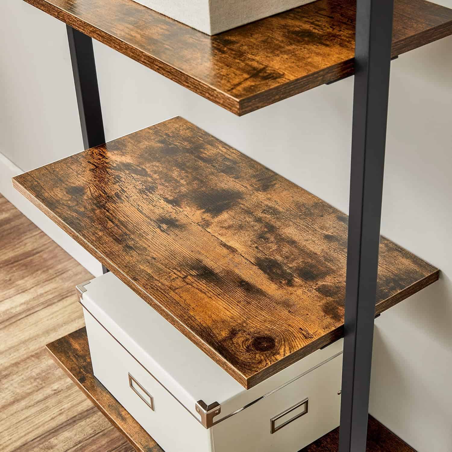 VASAGLE Etajera tip scara 6 rafturi, PAL si cadru metalic, 60x30x205 cm, maro rustic Mob360 – produs disponibil în magazinul Mob360.