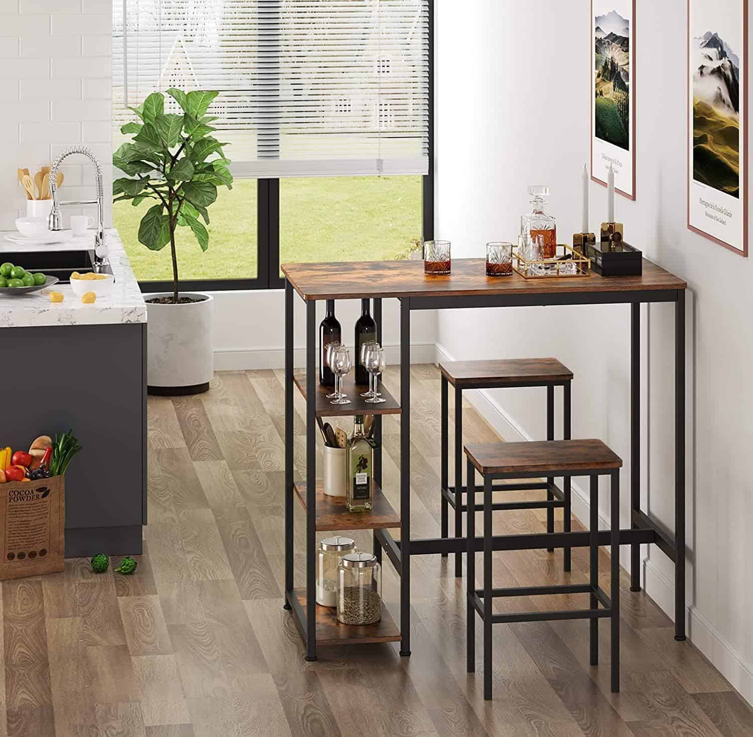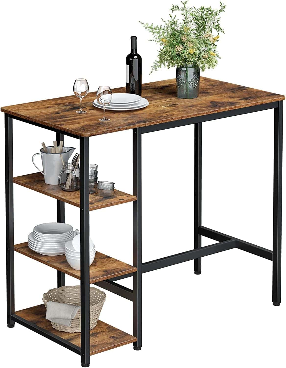 VASAGLE Masa de bar dreptunghiulara cu cadru metalic, 3 rafturi, design industrial, 109x60x100cm, maro vintage si negru Mob360 – produs disponibil în magazinul Mob360.