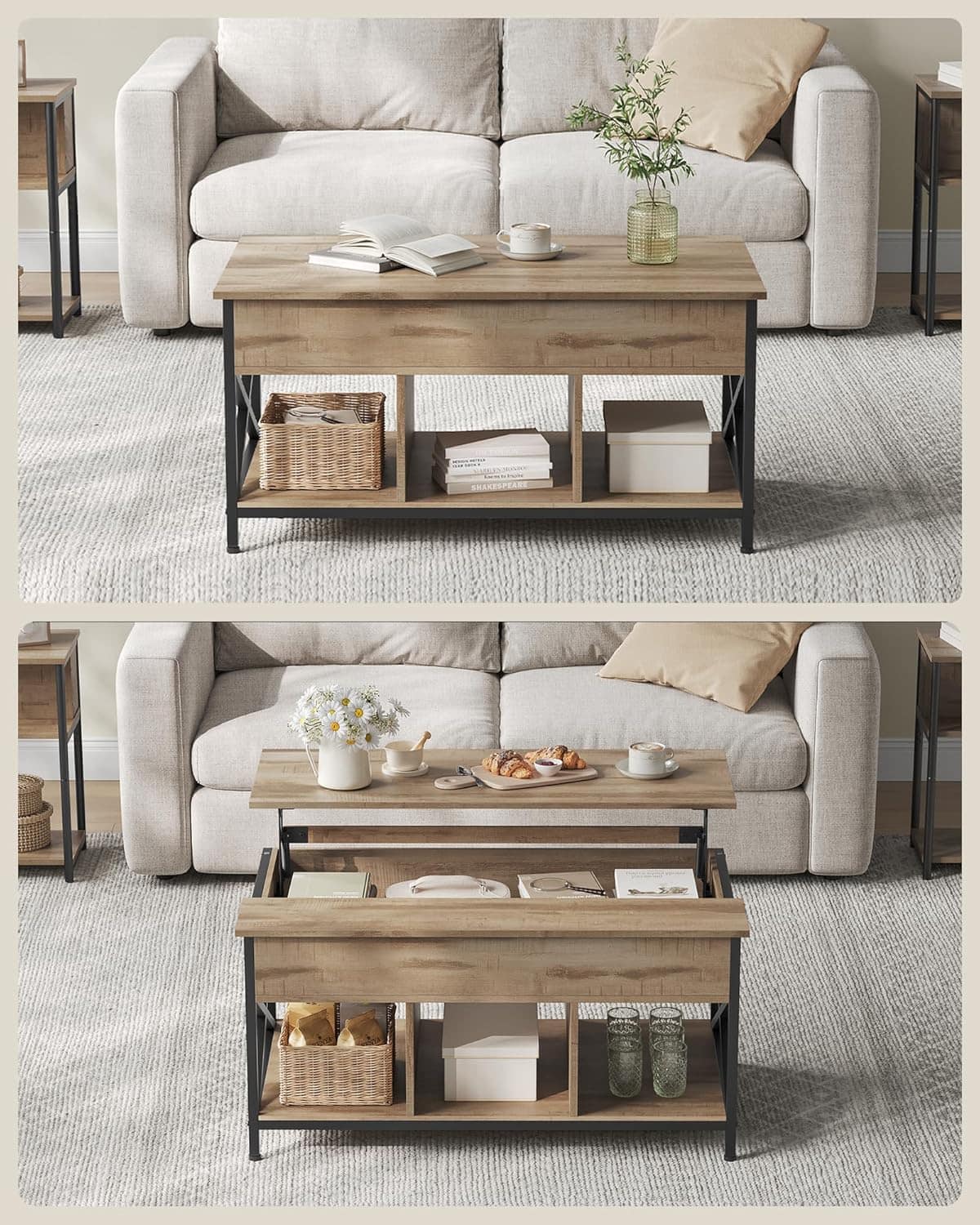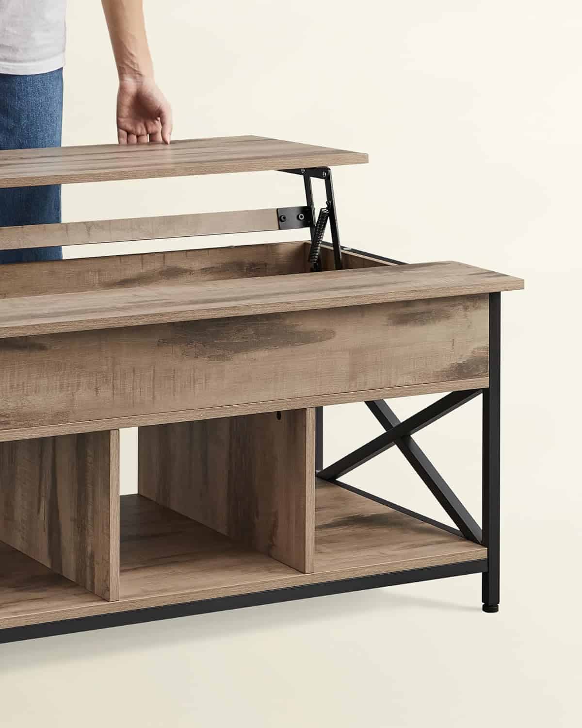 VASAGLE Masa de cafea cu inaltime reglabila, spatiu de depozitare ascuns, 60x100x(48-62) cm, gri stejar Mob360