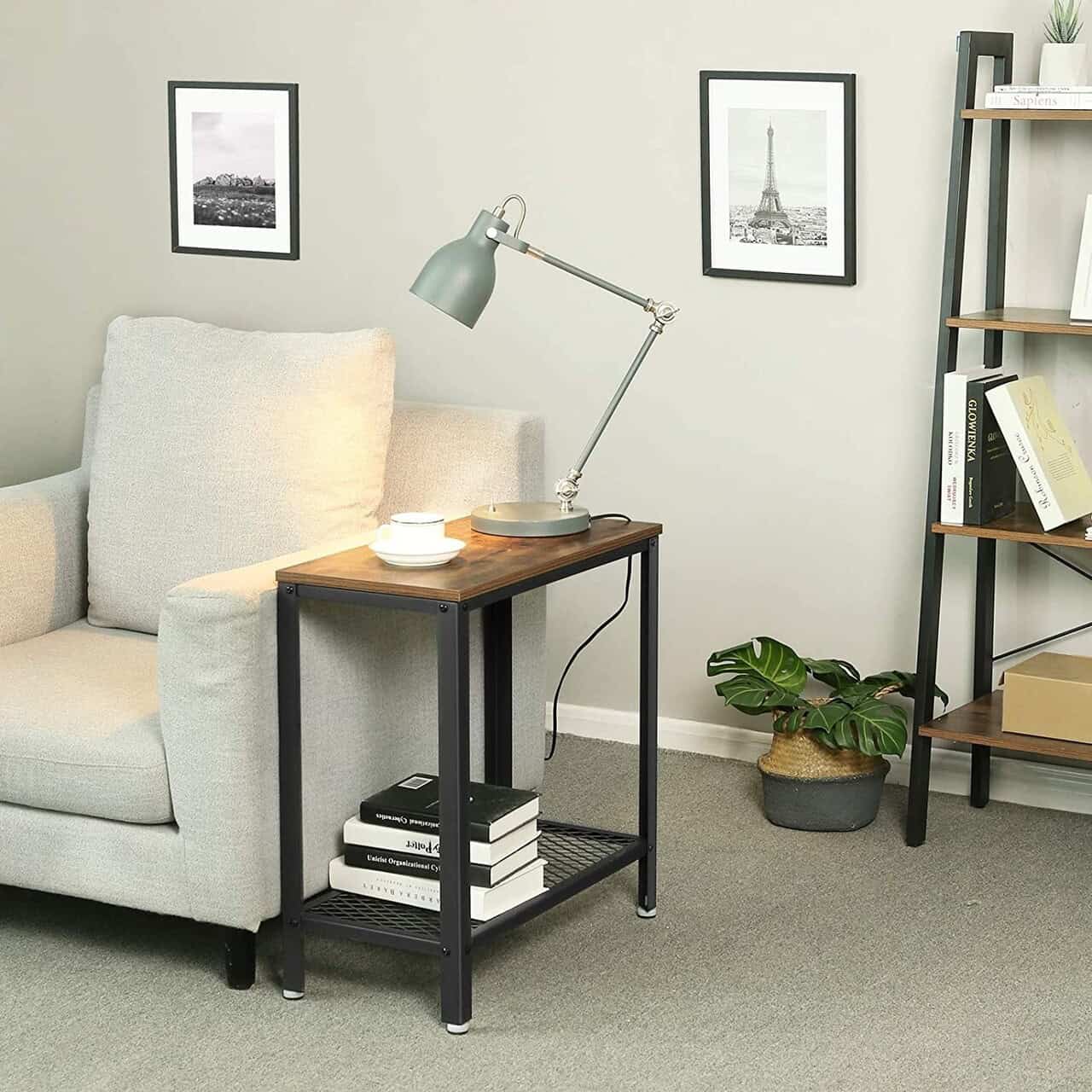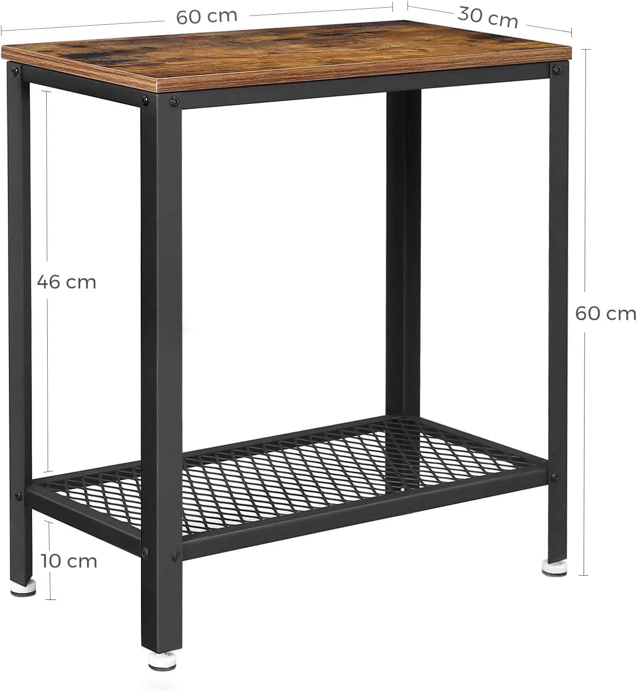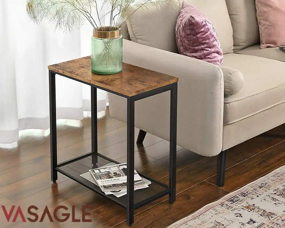 VASAGLE Masa de cafea laterala, cu 2 nivele, cadru din otel, 60x30x60cm, maro rustic Mob360 – produs disponibil în magazinul Mob360.