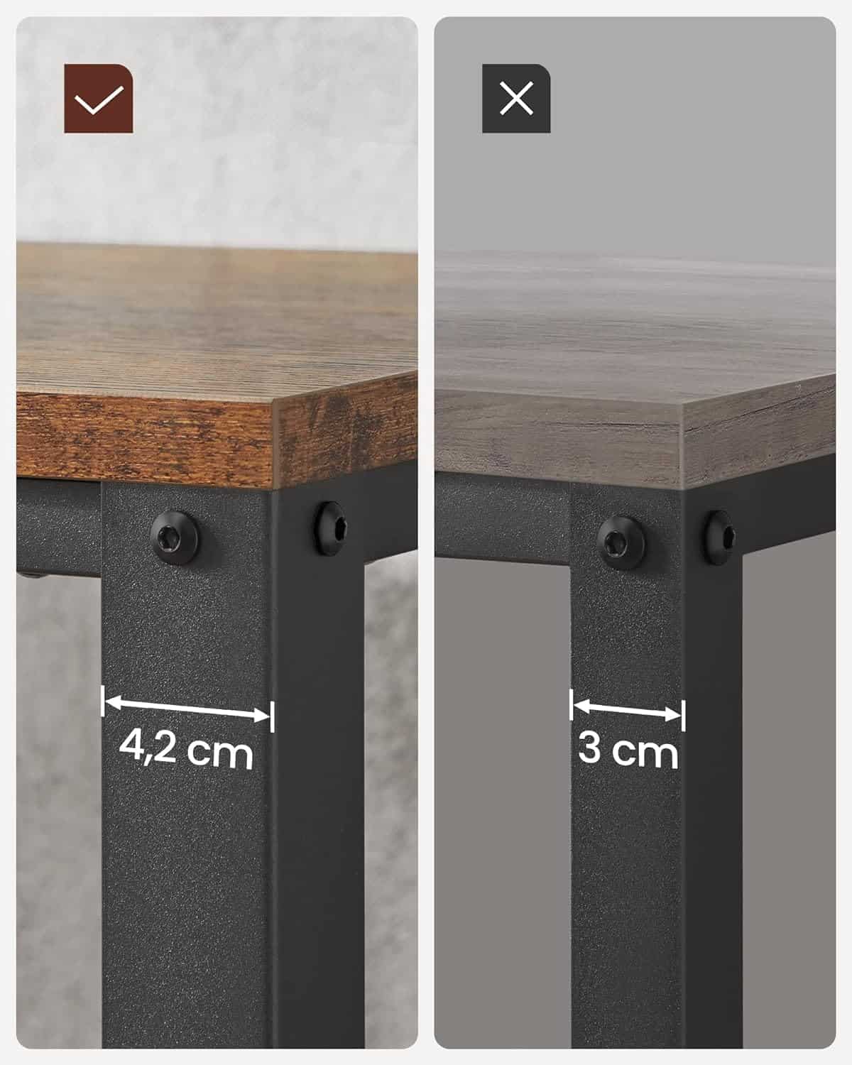 Dimensiunile produsului: 45D x 45W x 55H cm Culoare: maro vintage Despre acest articol Combinand rama neagra cu blatul de masa maro rustic, amestecul elegant de stiluri face ca aceasta masuta de capat sa iasa in evidenta, dand camerei dvs. o nota individuala. Fabricata dintr-un cadru din otel rezistent si placi aglomerate de calitate superioara, aceasta masuta laterala ofera o capacitate de incarcare ridicata (max. 20 kg pentru blatul mesei, max. 15 kg pentru raft).Datorita instructiunilor usor de inteles, nu este nevoie de un mare efort pentru a asambla aceasta masuta de cafea de 45 x 45 x 55 cm.