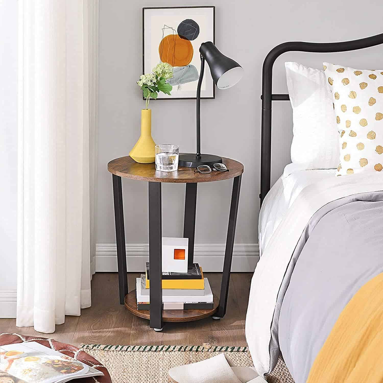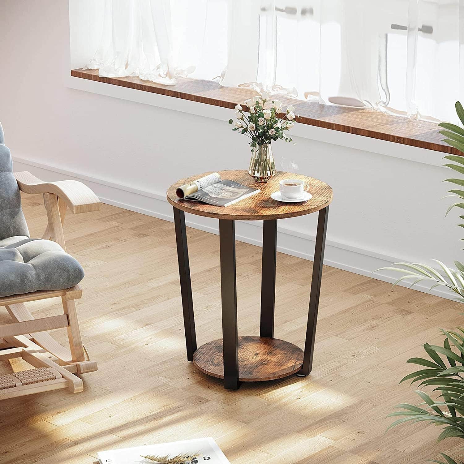 VASAGLE Masa de cafea rotunda cu cadru de otel, stil industrial, 50x57cm, maro rustic si negru Mob360
