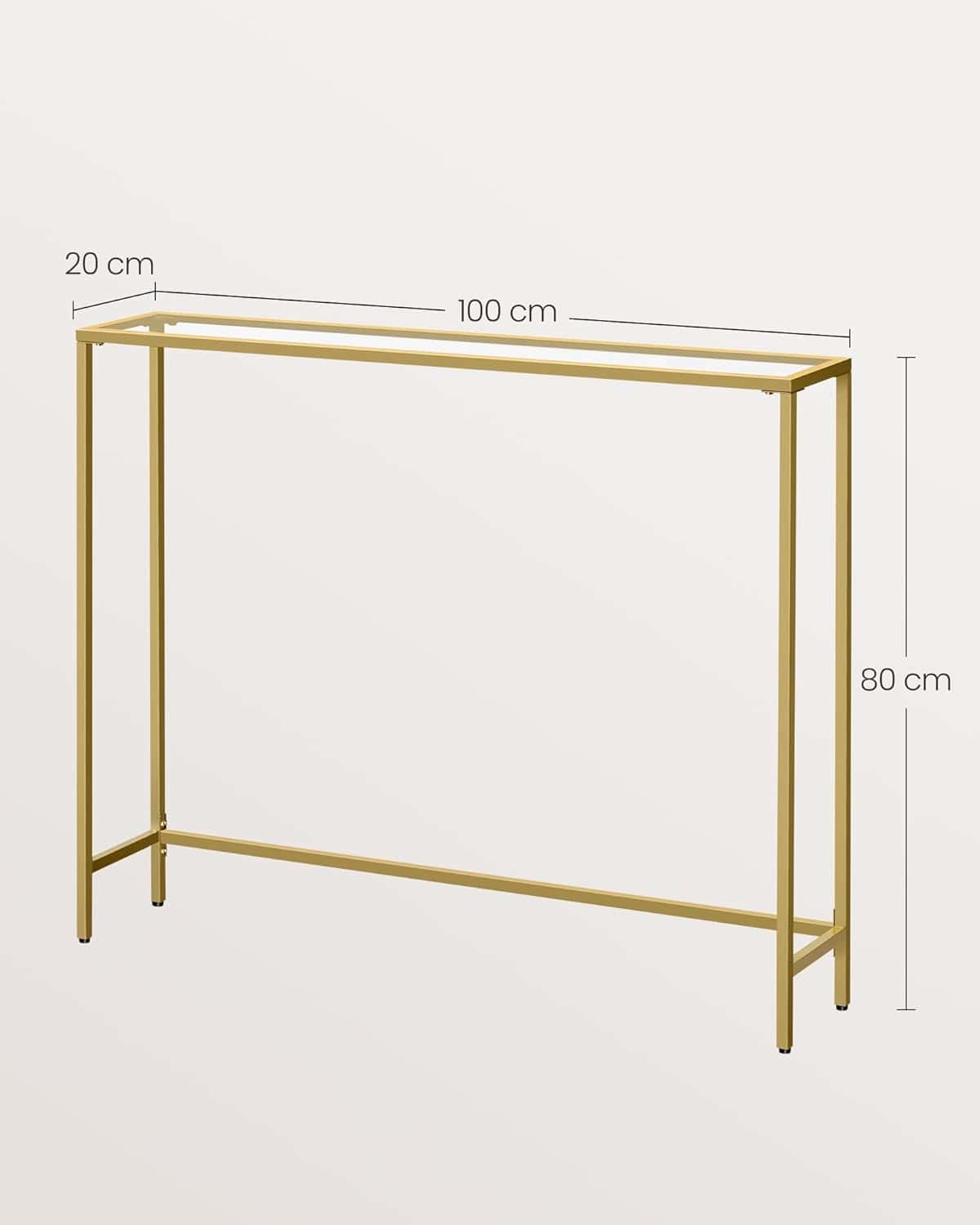 VASAGLE Masa de intrare, blat din sticla securizata, cadru metalic, 20x100x80 cm, auriu Mob360
