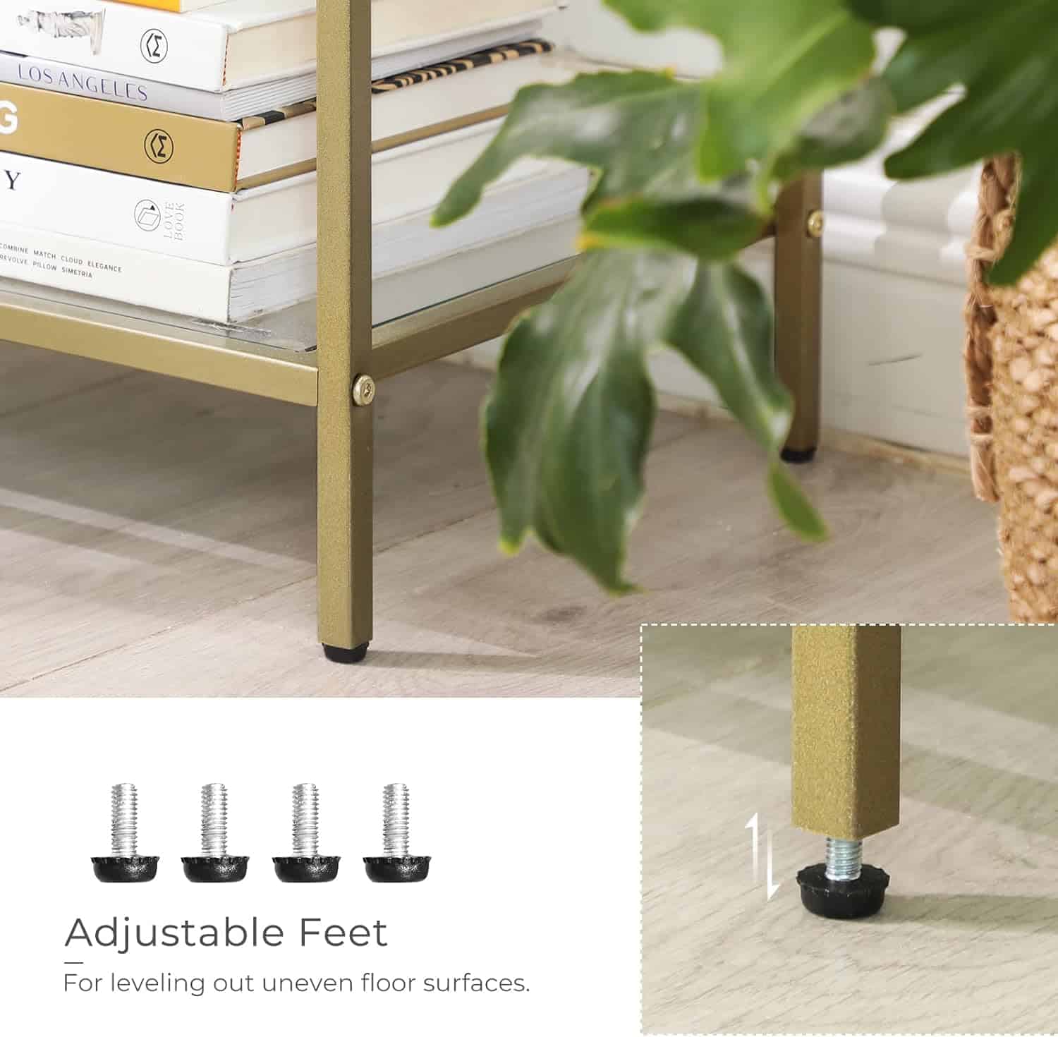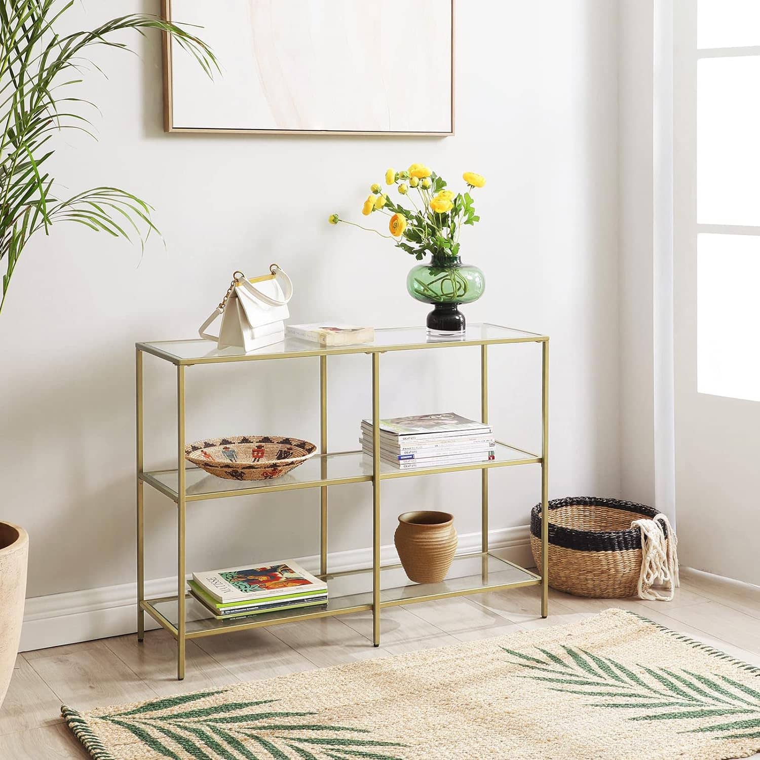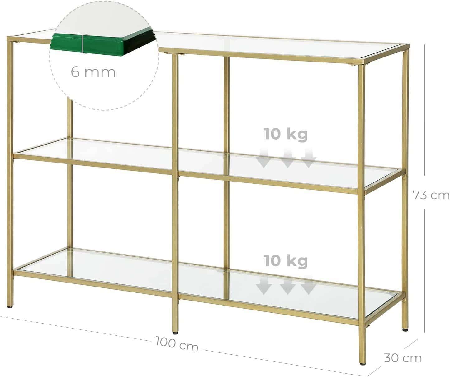 VASAGLE Masa de intrare, pe 3 nivele, blat din sticla securizata, cadru metalic, 30x100x73cm, auriu Mob360 este disponibil în magazinul Mob360.
