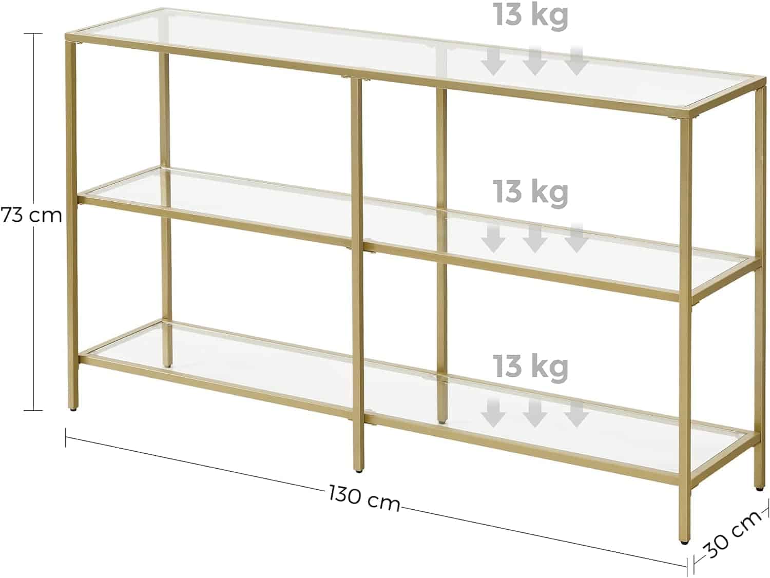 VASAGLE Masa de intrare, pe 3 nivele, blat din sticla securizata, cadru metalic, 30x130x73cm, auriu Mob360 este disponibil în magazinul Mob360.