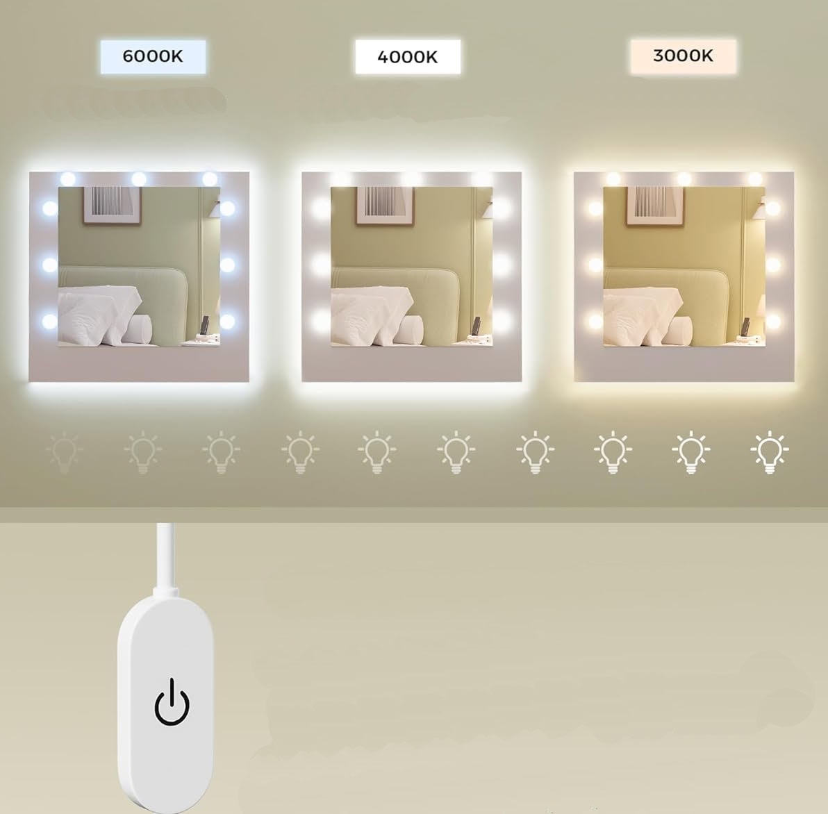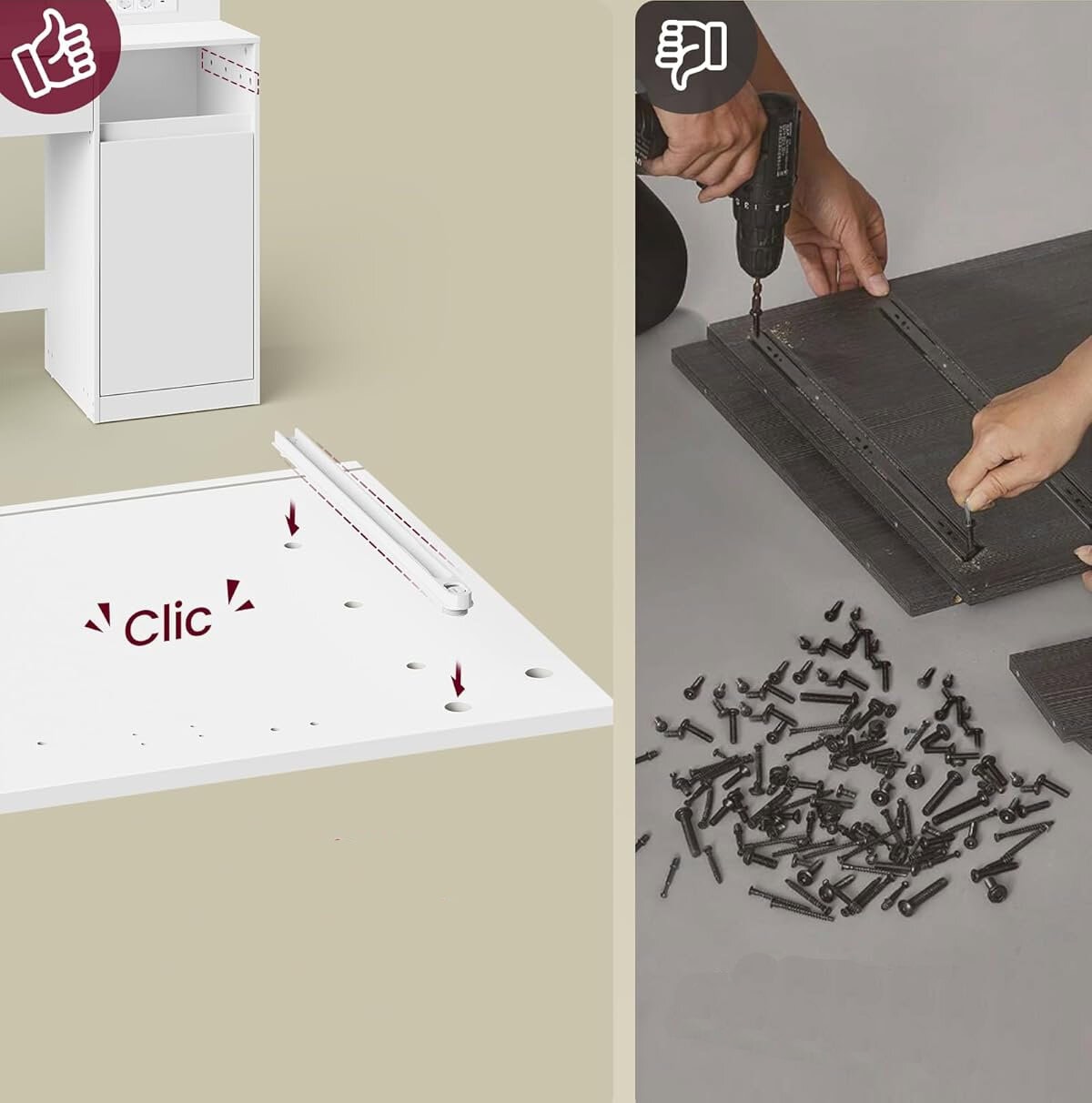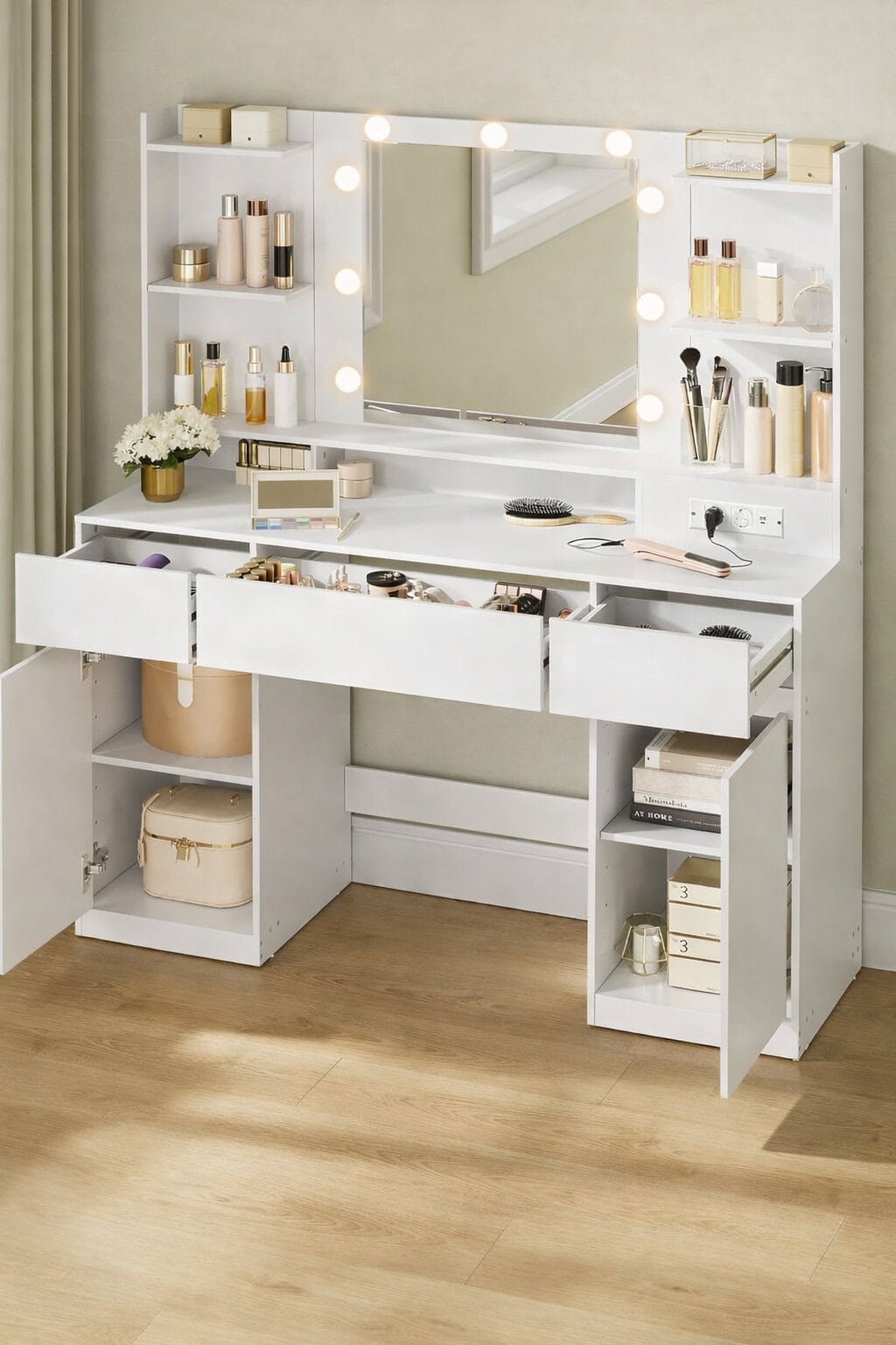 VASAGLE Masa de toaleta Kailyn cu oglinda, iluminare LED reglabila, priza integrata AC si USB, fronturi MDF, 40x107x144 cm, alb Mob360