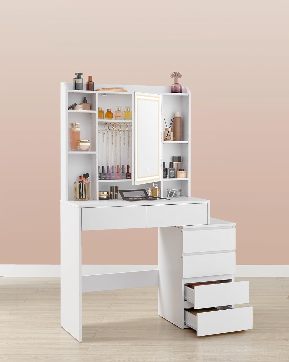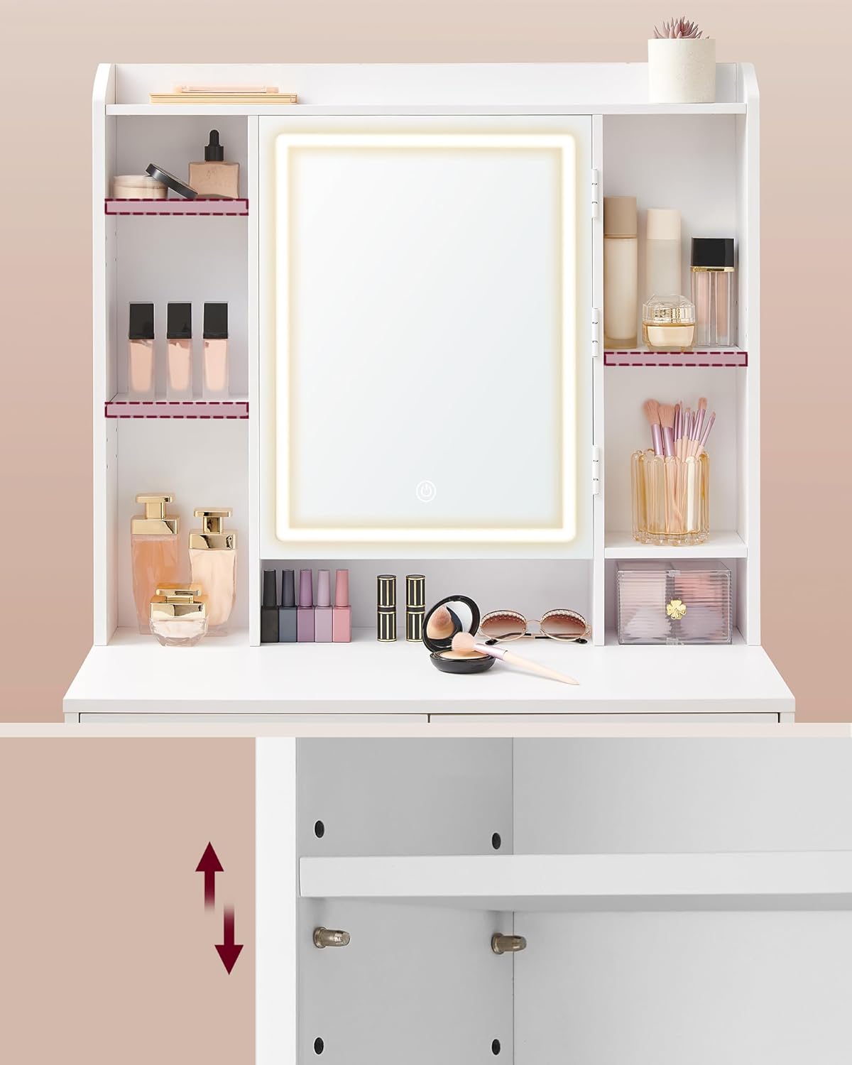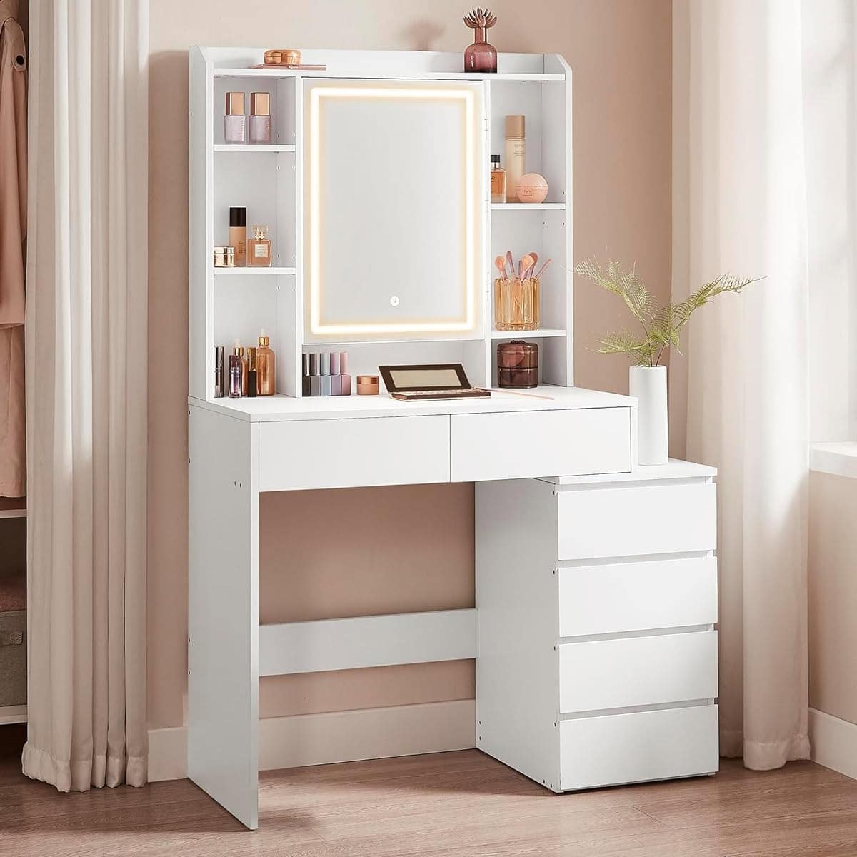 VASAGLE Masa de toaleta Kailyn, oglinda LED cu iluminare reglabila, 6 sertare, 40x98x145 cm, alb Mob360