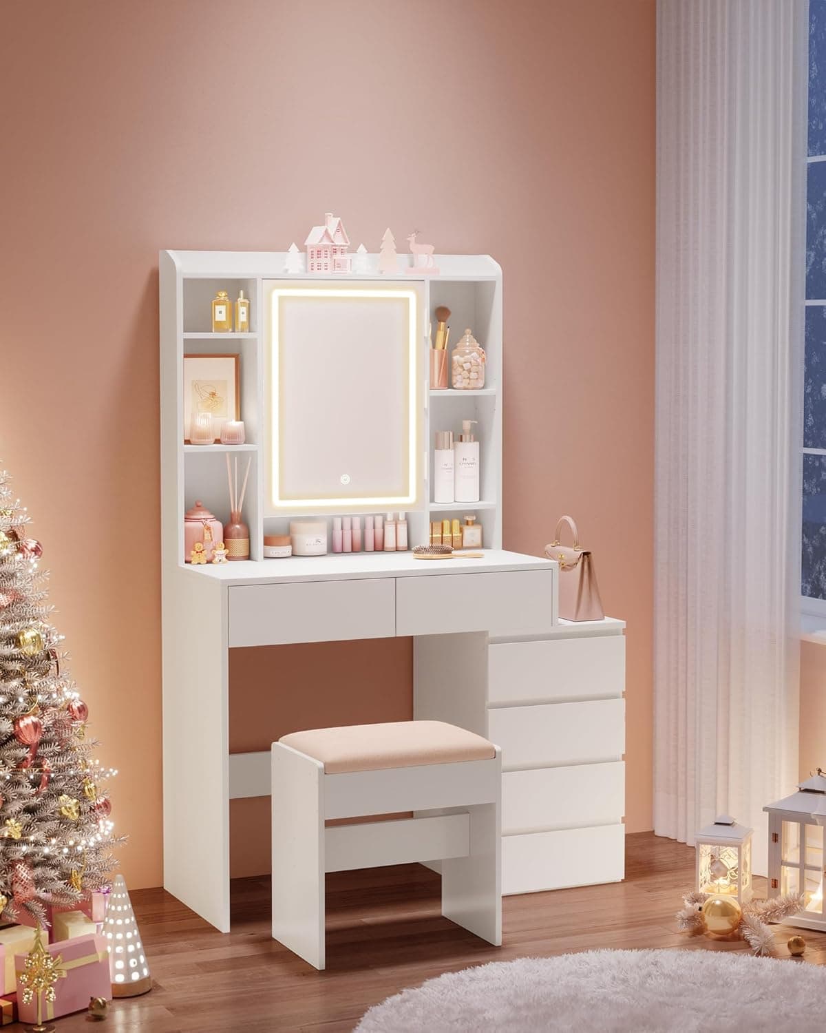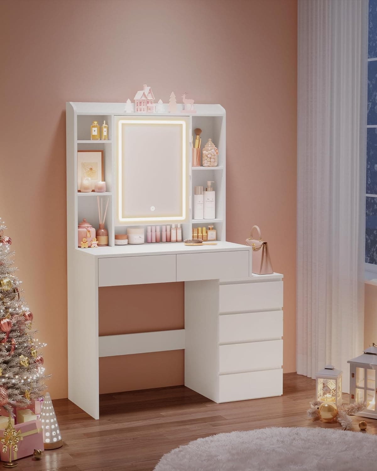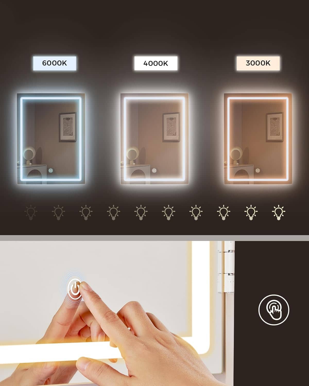 VASAGLE Masa de toaleta Kailyn, oglinda LED cu iluminare reglabila, 6 sertare, 40x98x145 cm, alb Mob360