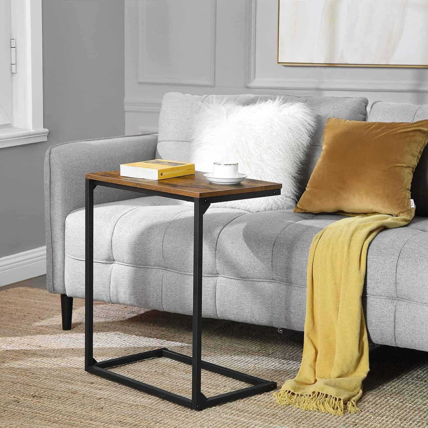 VASAGLE Masa laterala pentru laptop sau servire masa, stil industrial, 55x35x66cm, maro rustic si negru Mob360